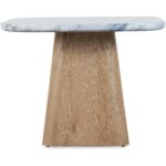 - Finish: Natural oak finish on base with quartz stone top featuring gray, beige and brown natural colorations