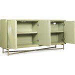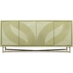 - Finish: Green painted finish with tone-on-tone carved motif with gold metal base