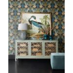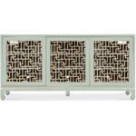 Doors have contrasting silver leaf champagne-colored open fretwork and trim