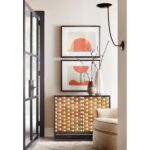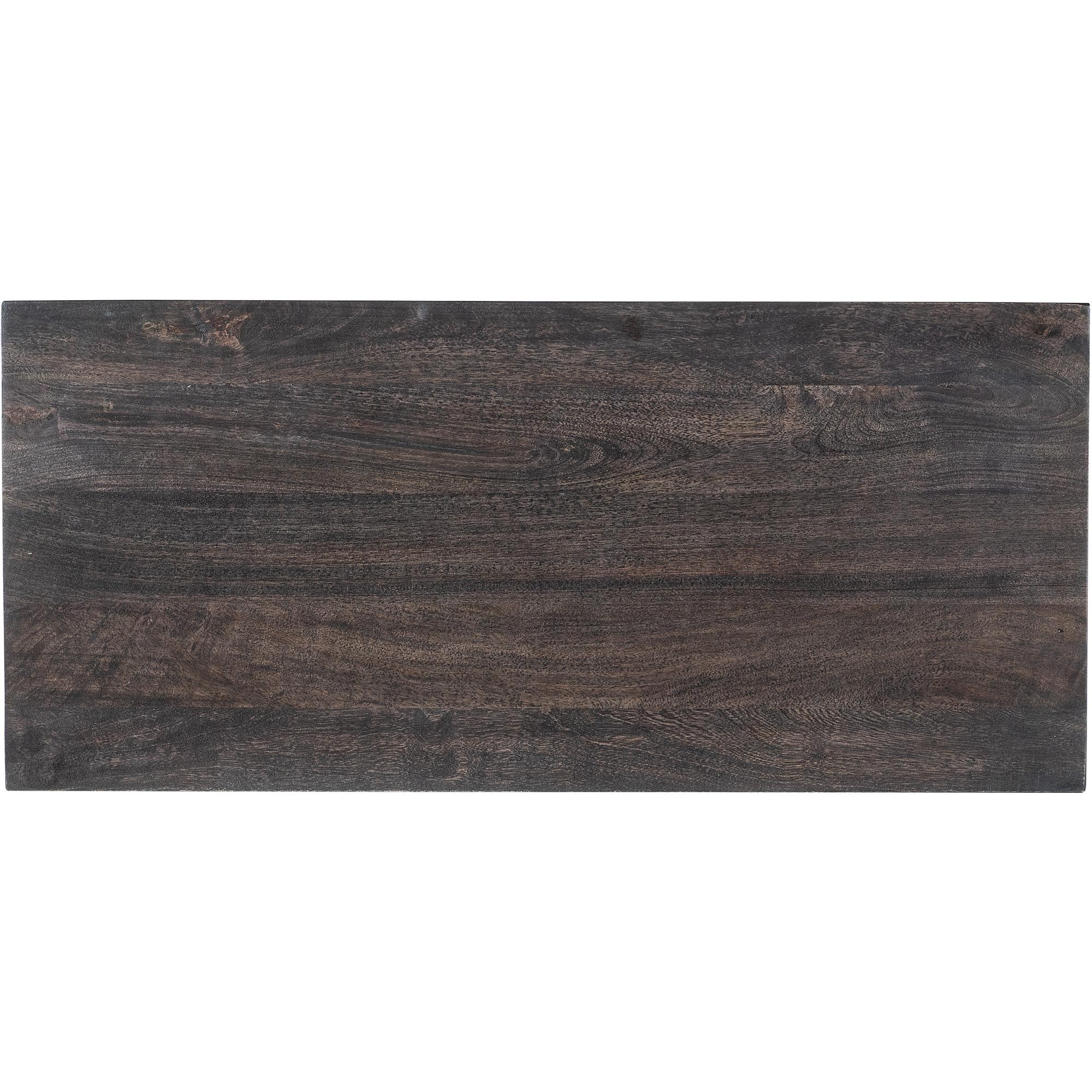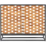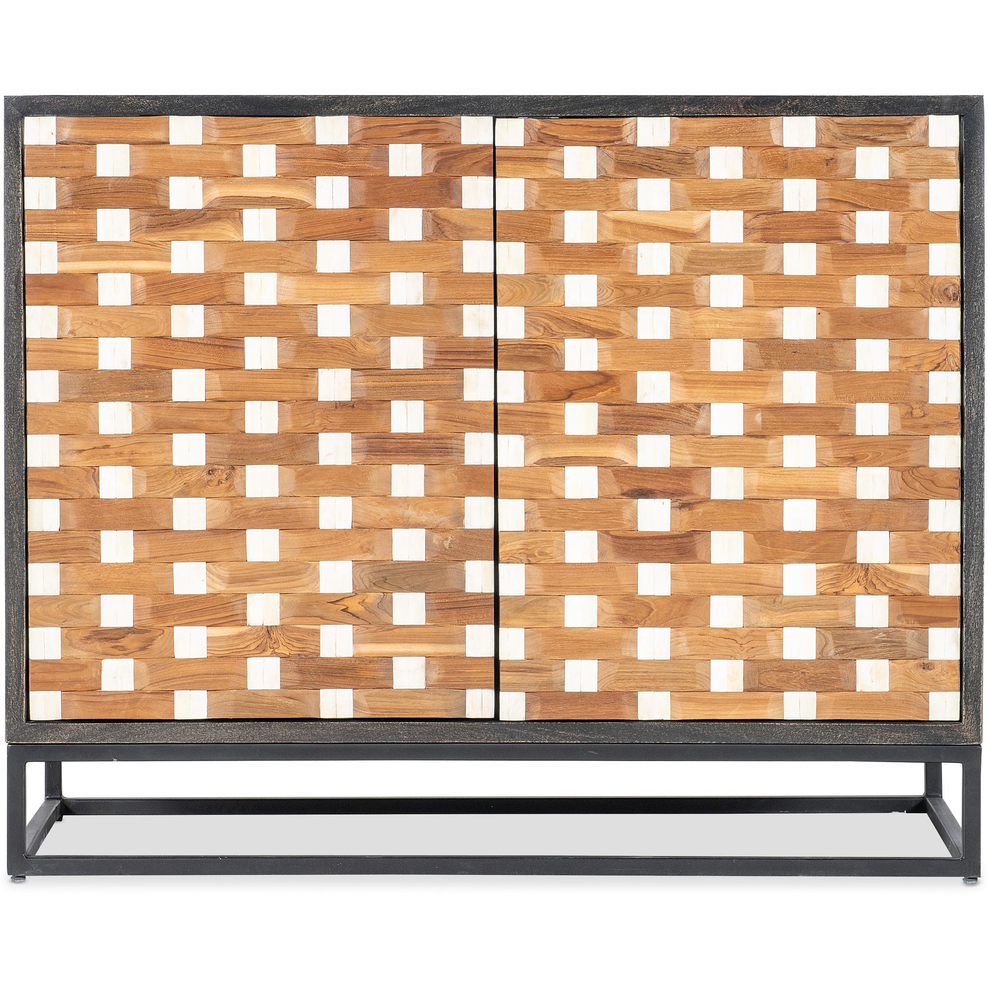 - Finish: Black rustic finish on the exterior with contrasting natural mango and bone weave design on door fronts. Black iron base.
