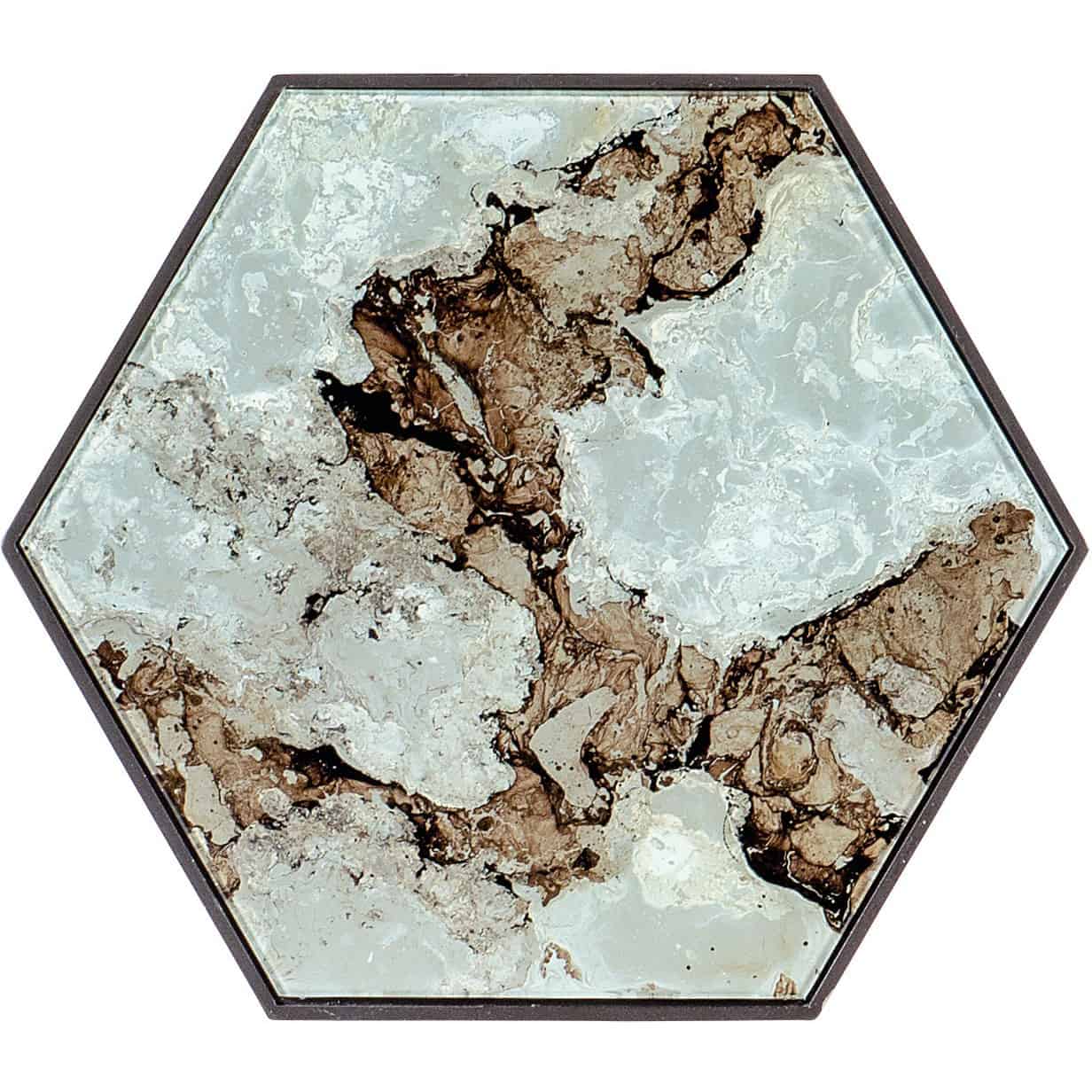 - Finish: Brown metal base with reverse painted glass top