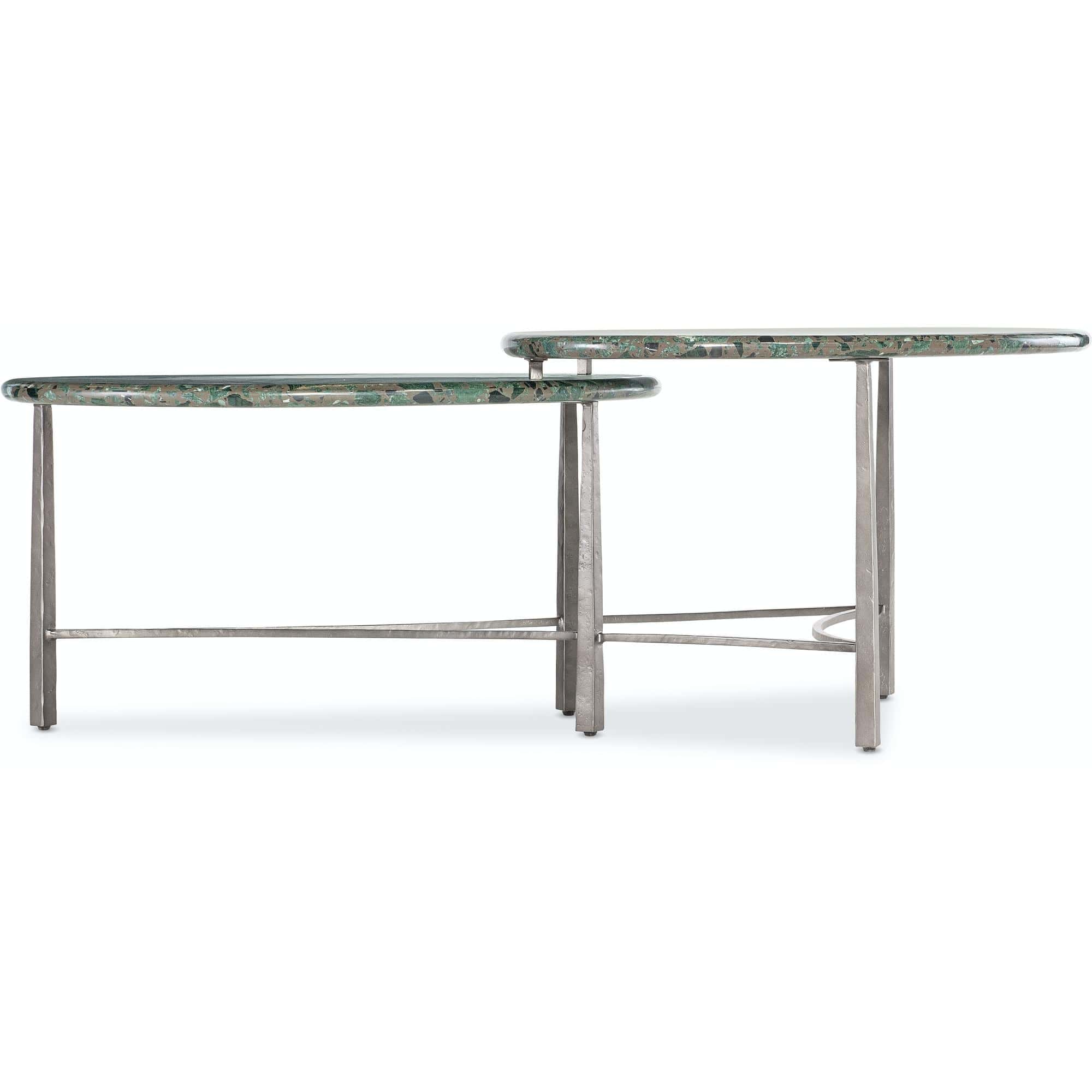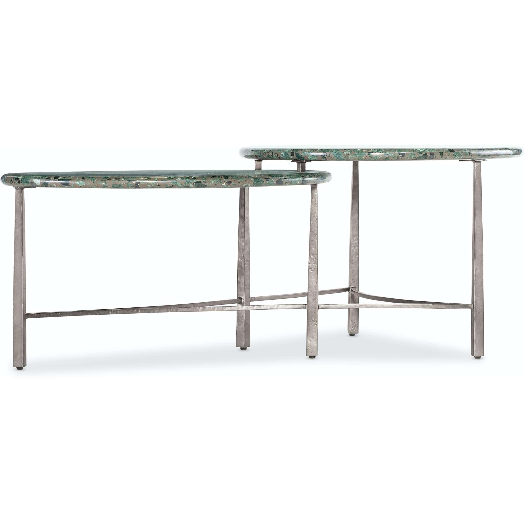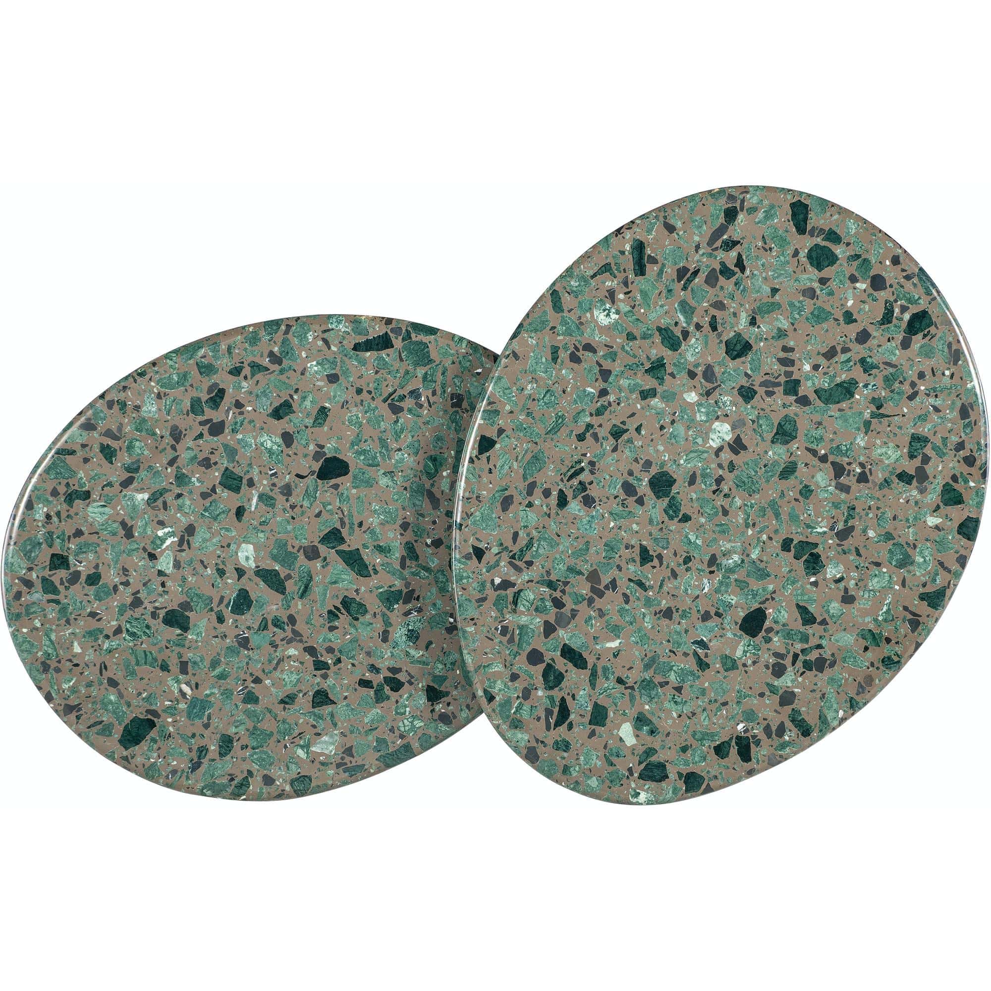 - Finish: Textured pewter metal base with stone tops with green, black and charcoal bits