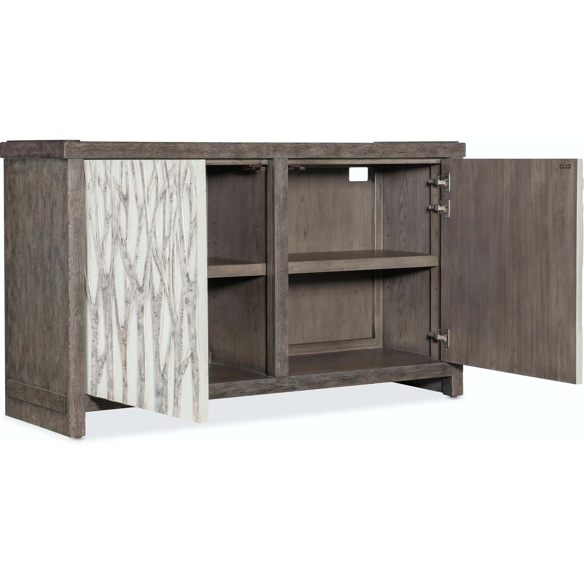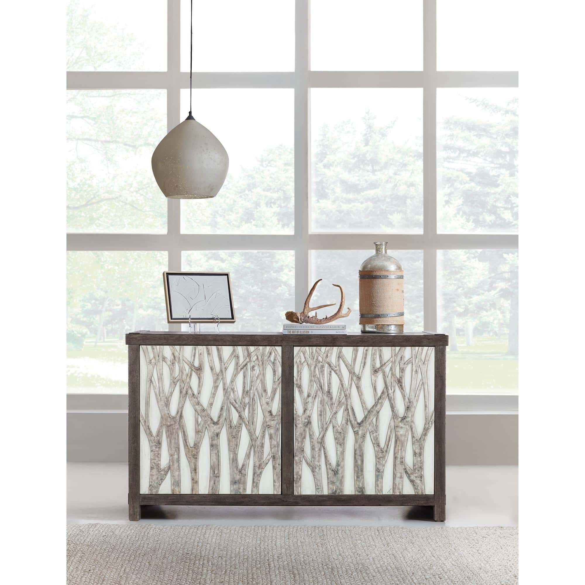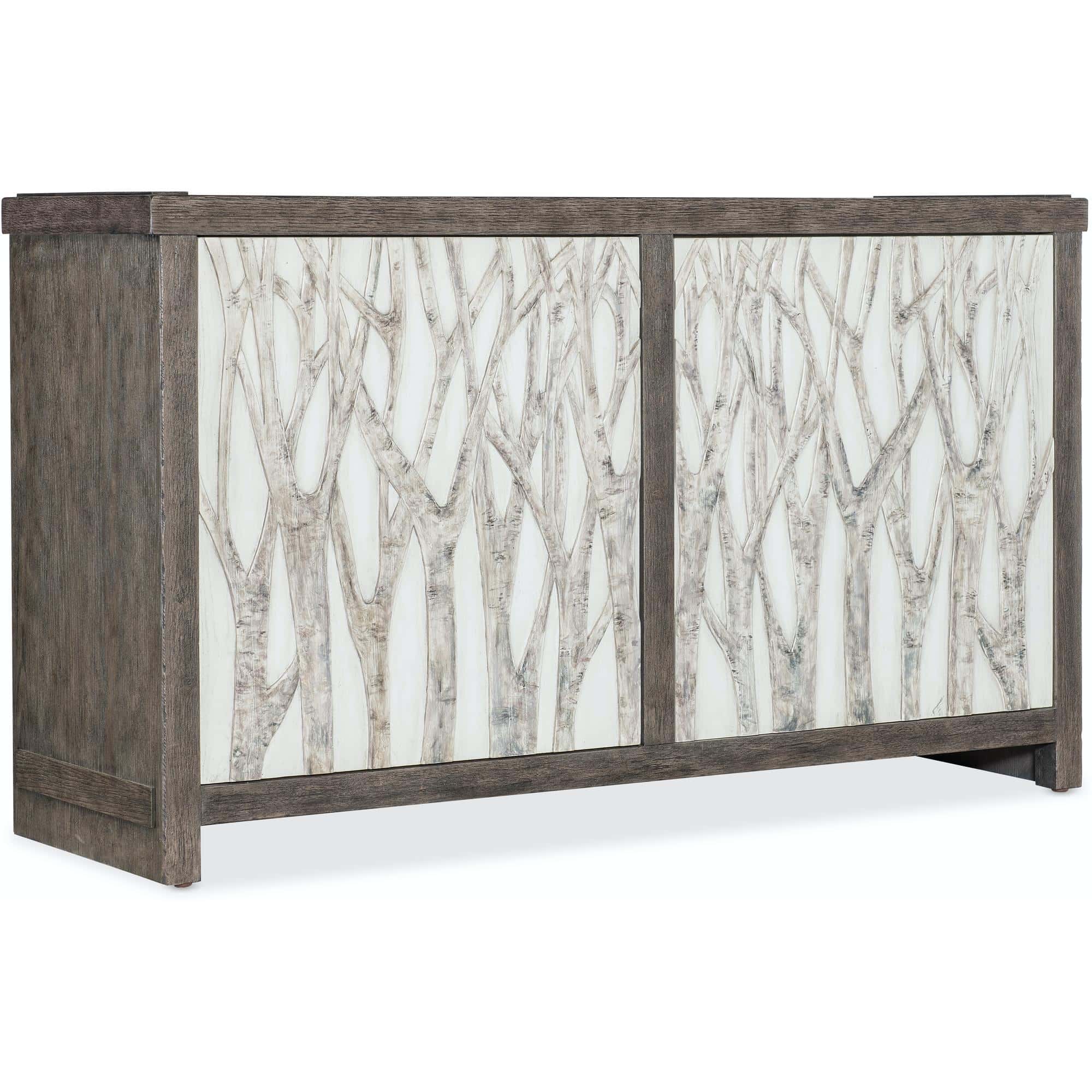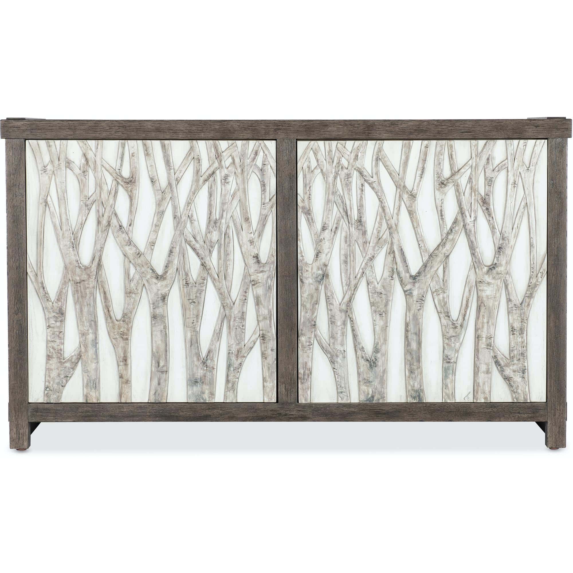 Finish: Dark wood finish with raised tree and branch motif on contrasting white background on door fronts