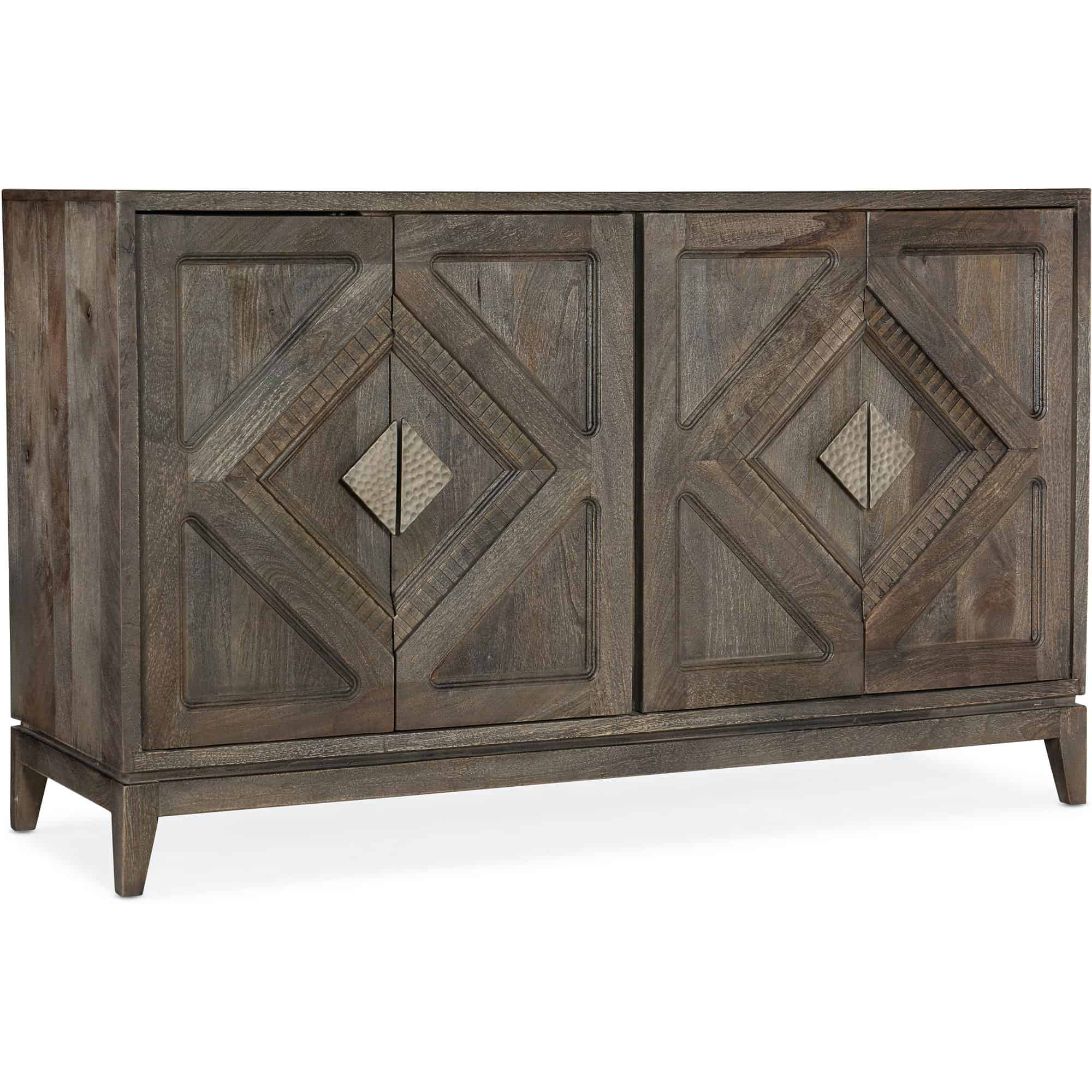 - Finish: Natural medium wood finish with pewter hammered metal hardware
