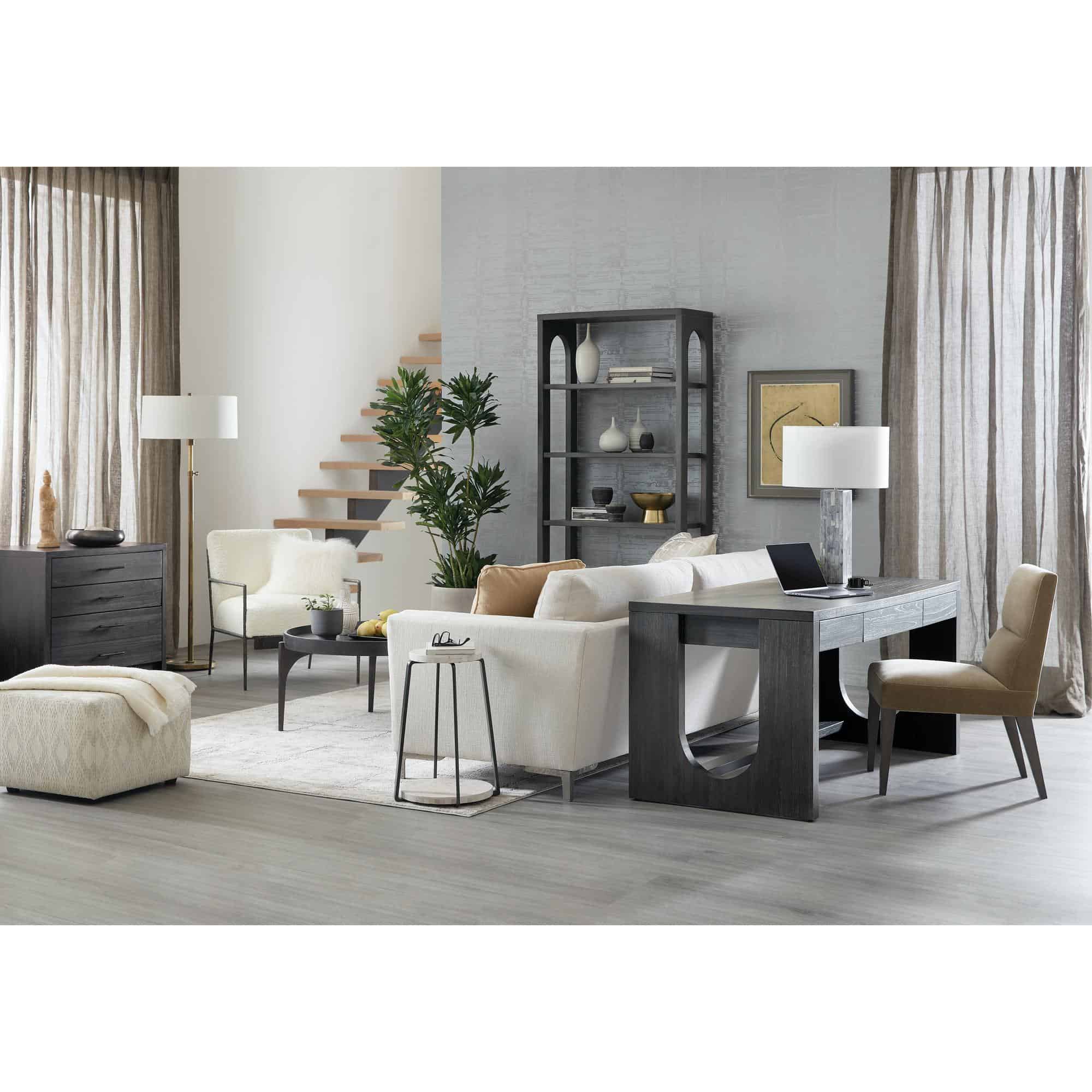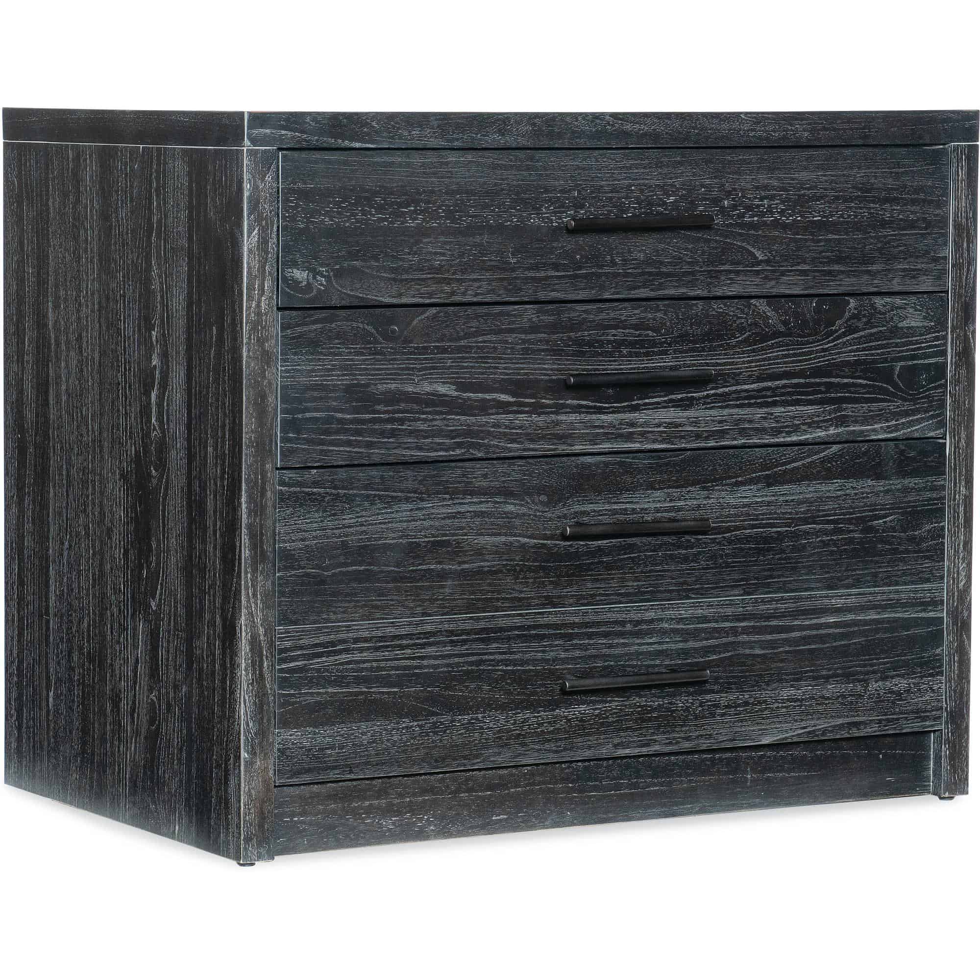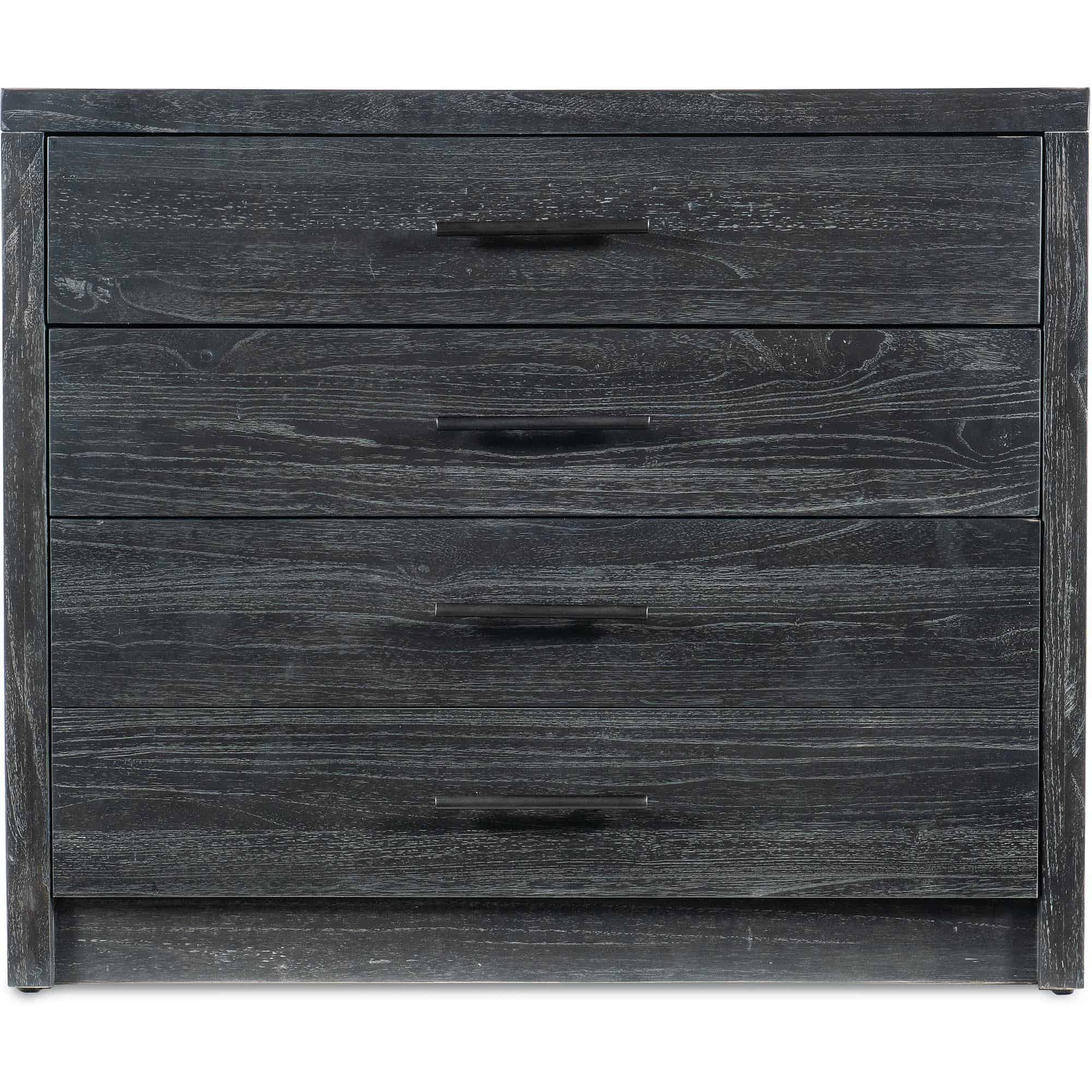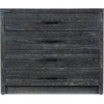 - Finish: Black wood finish with wood grain showing through. Metal bar pulls in charcoal finish.