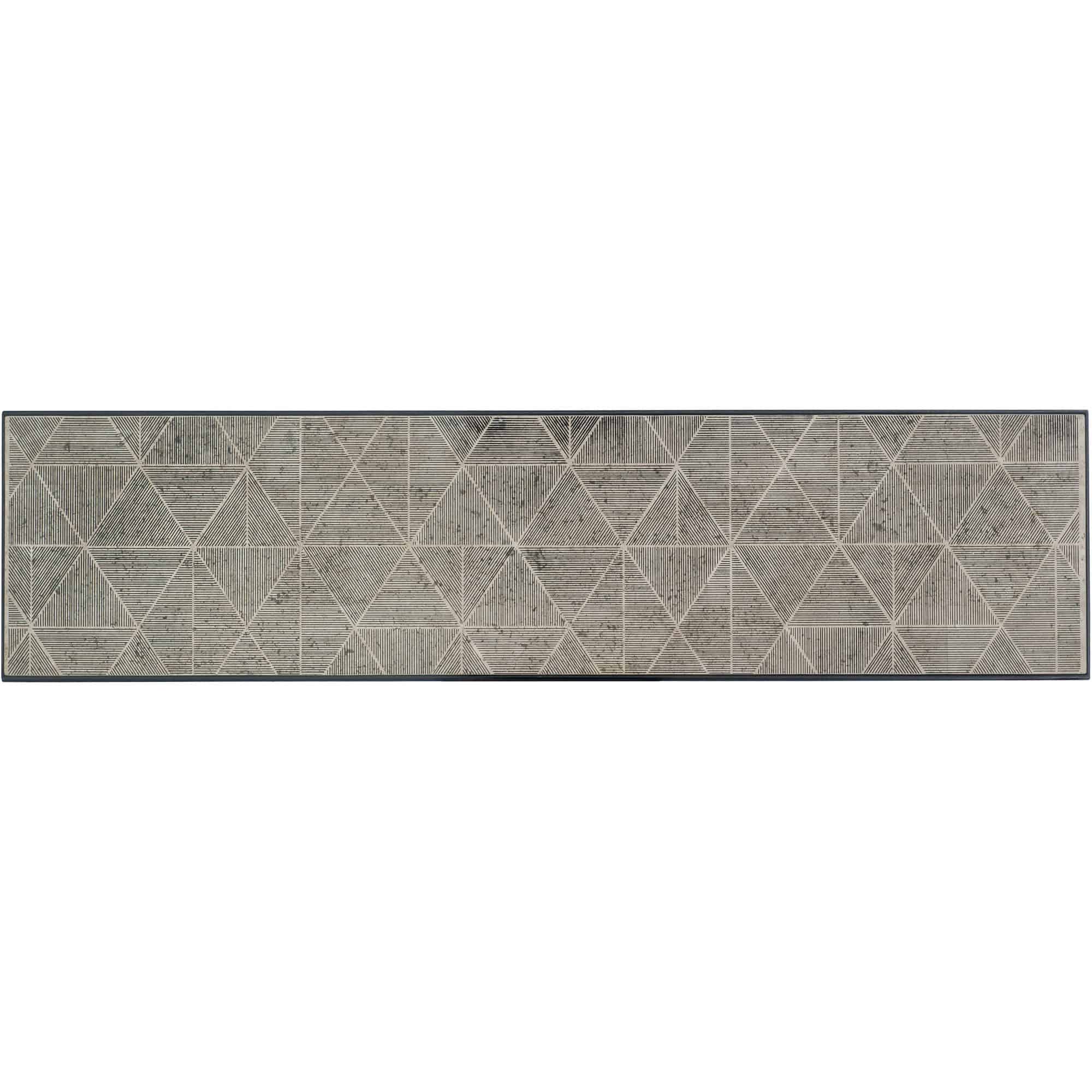 - Finish: Black metal base with travertine stone top with screen printed design