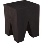 Unique in structure and in style, this side table cannot help but make a dramatic impact. Composed of suar wood with a burned black water base, it holds dimension despite its monochrome palette. Placed in the modern living room interior, it adds all new angles to the furnishings and decor in its midst.