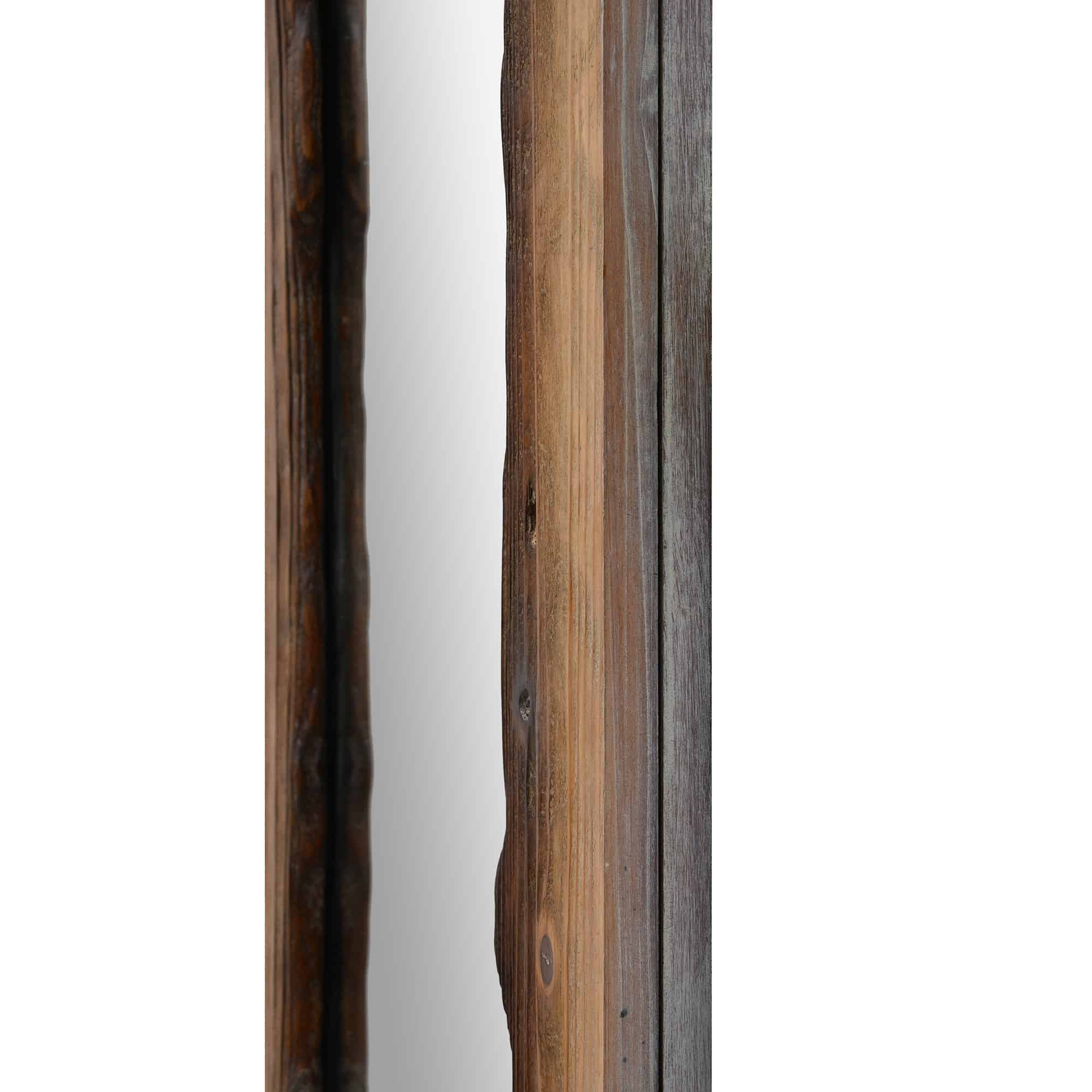 A true reflection of nature, this unusual mirror is framed with fir wood in a natural finish. It is perfect for adding warmth to an industrial space or a more rustic cottage style. This rectangular piece brings the beauty of the outdoors into the home.