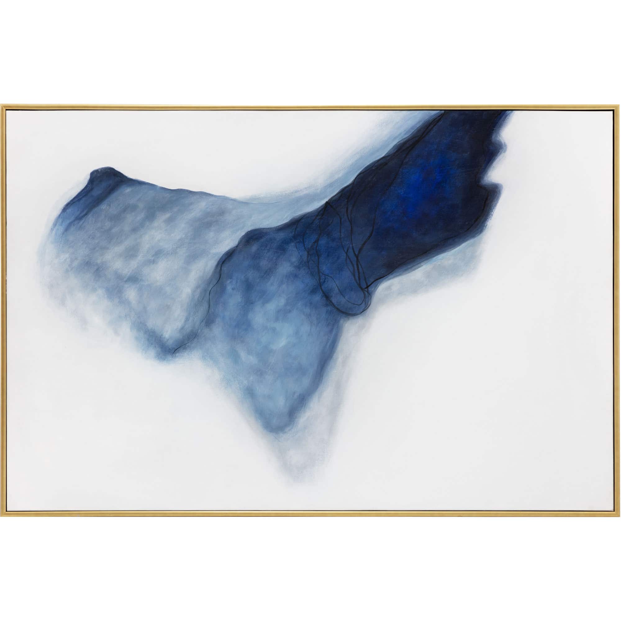 Purposeful brush strokes amalgamate into varying pools of cool blue with this mesmerizing painting. Completed with a gold floater frame. Each artwork is hand-painted and will feature slight variations that make every piece unique.