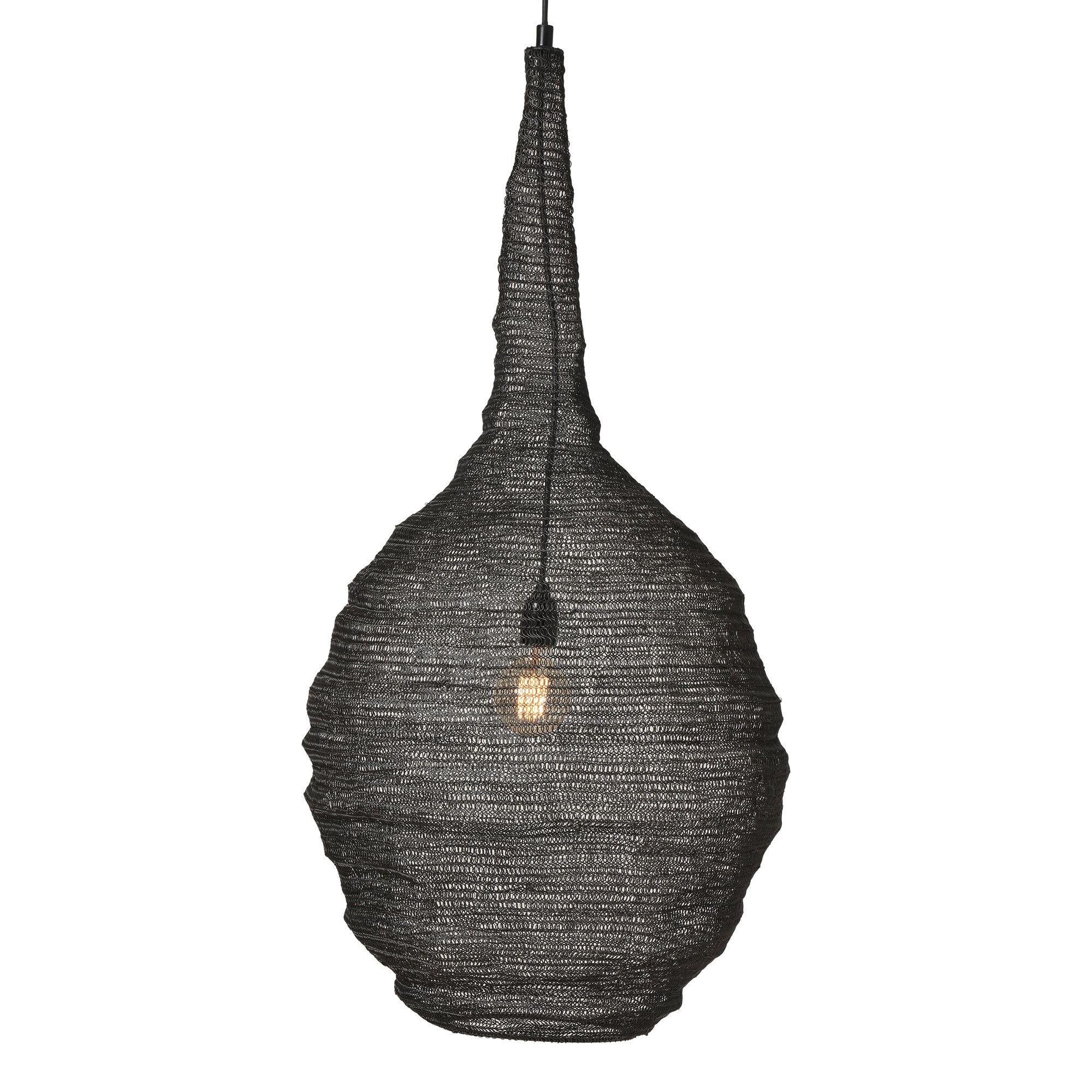 Just the thing for adding a laid-back organic feel in a bedroom, dining room, living room, or entryway, this black-painted ceiling fixture will light up any space with illuminated style. Its strikingly modern sculptural iron mesh shade diffuses a dimmable glow throughout the room as it brings contemporary style to any interior.