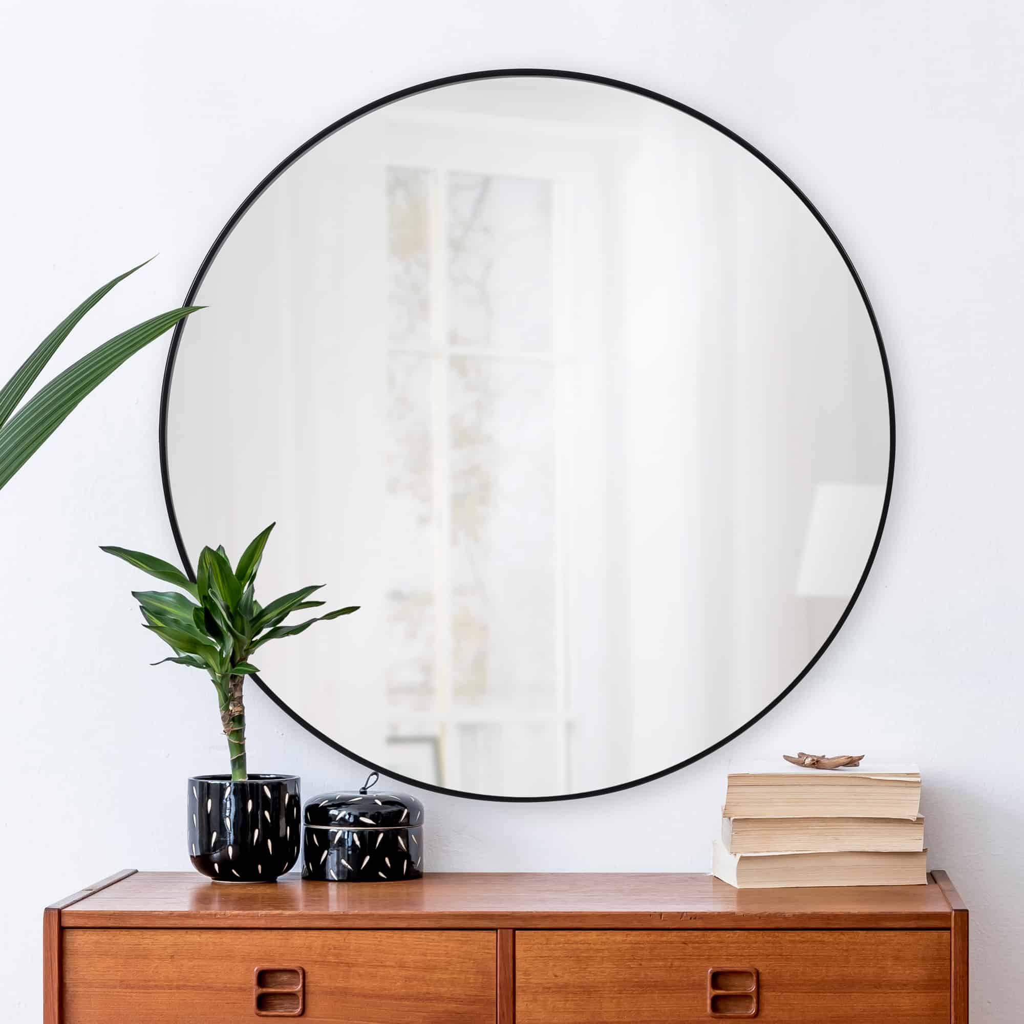 Set to capture and showcase the beauty of the home, this mirror’s minimalist design allows for its subjects to take the spotlight. With a black powder-coated finish, it easily complements the contemporary or industrial interior. The circular shape allows for great versatility in arrangement.