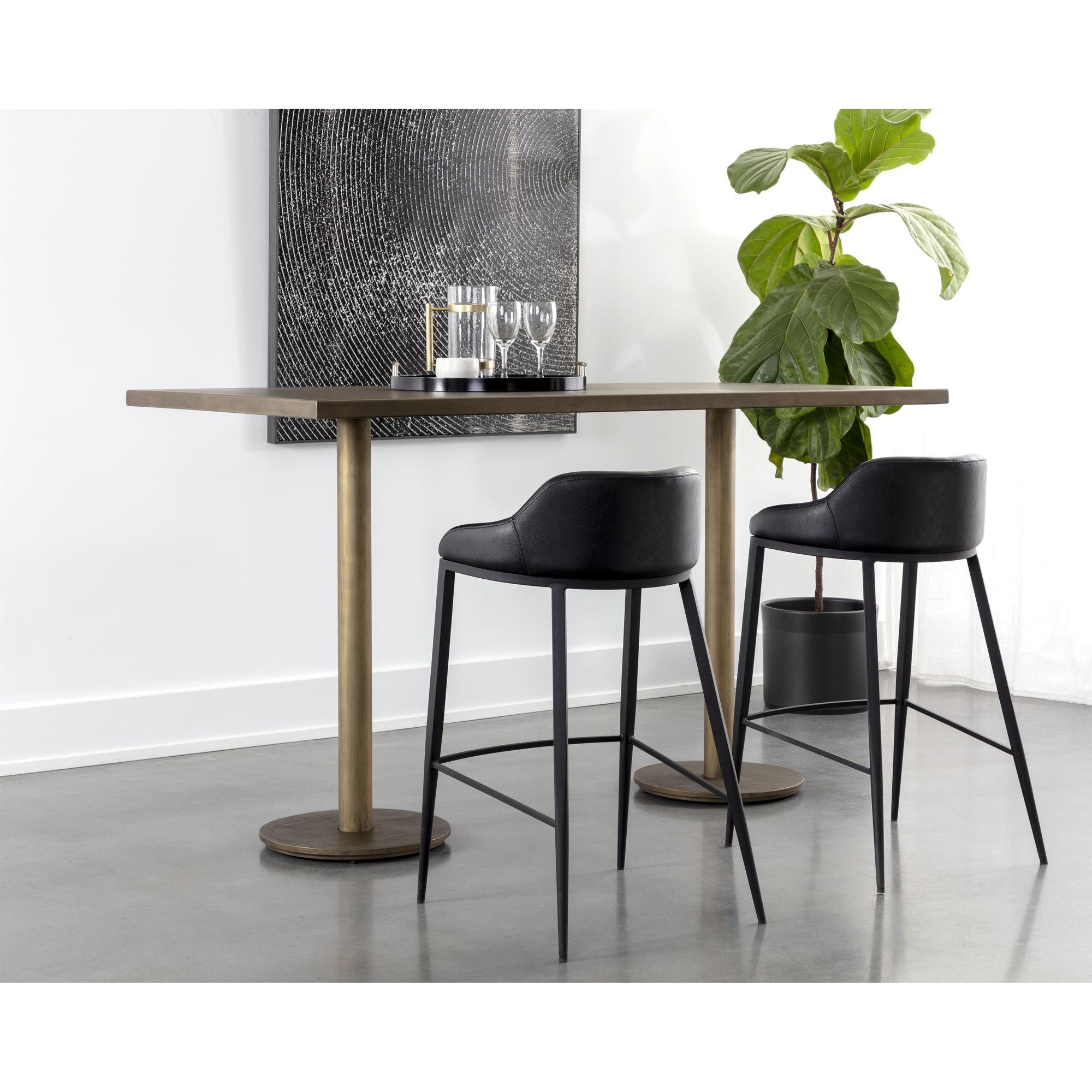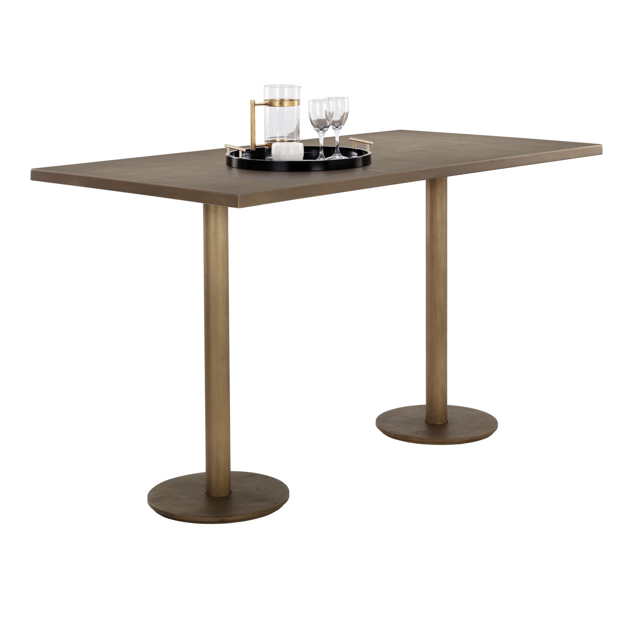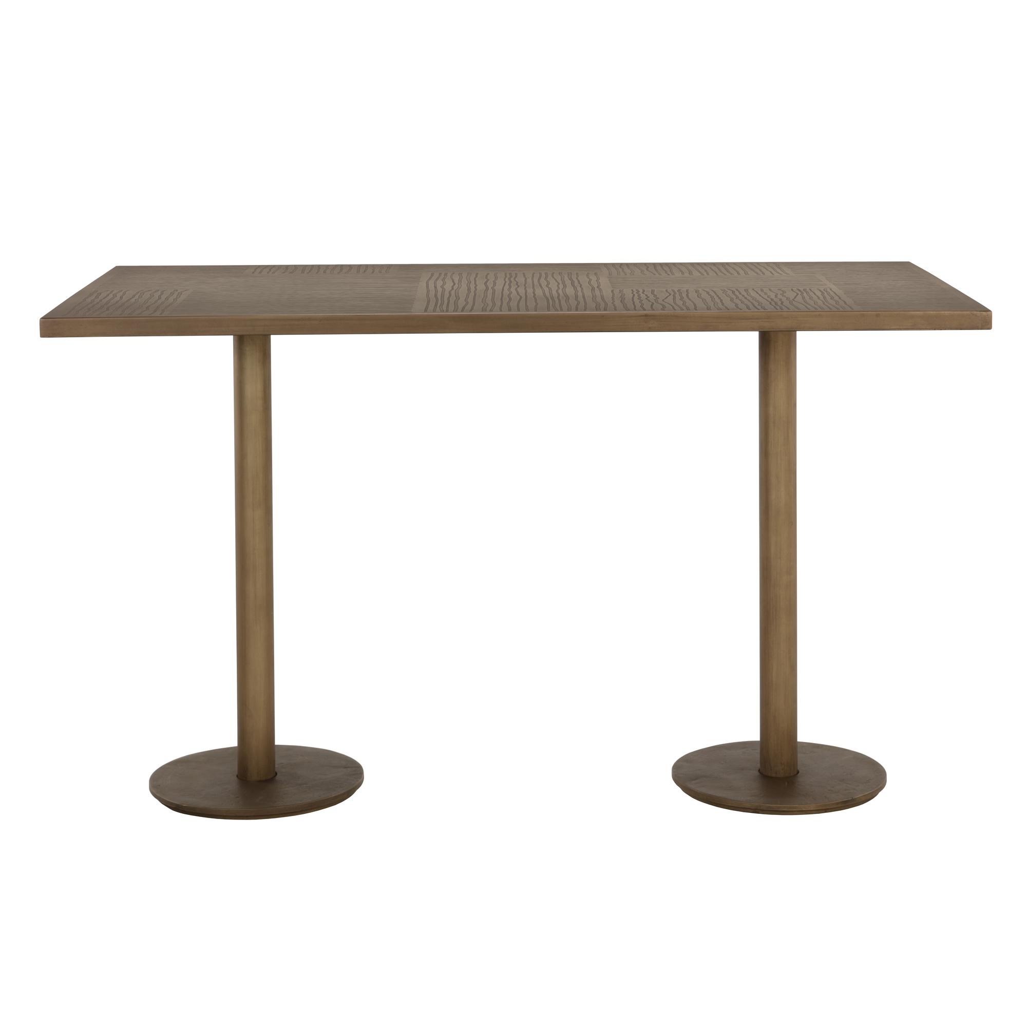 Globally inspired with a modern design, the Corina Bar Table will accentuate any dining space. Handcrafted from iron with an antique brass finish. Features a square tabletop etched with an artisanal design. Made in India. With refined craftsmanship, this design was brought to life by skilled local artisans. Due to the nature of handcraftsmanship, unique imperfections such as fissures, markings and variations in colour and shape are welcomed and appreciated characteristics for a truly one-of-a-kind piece.