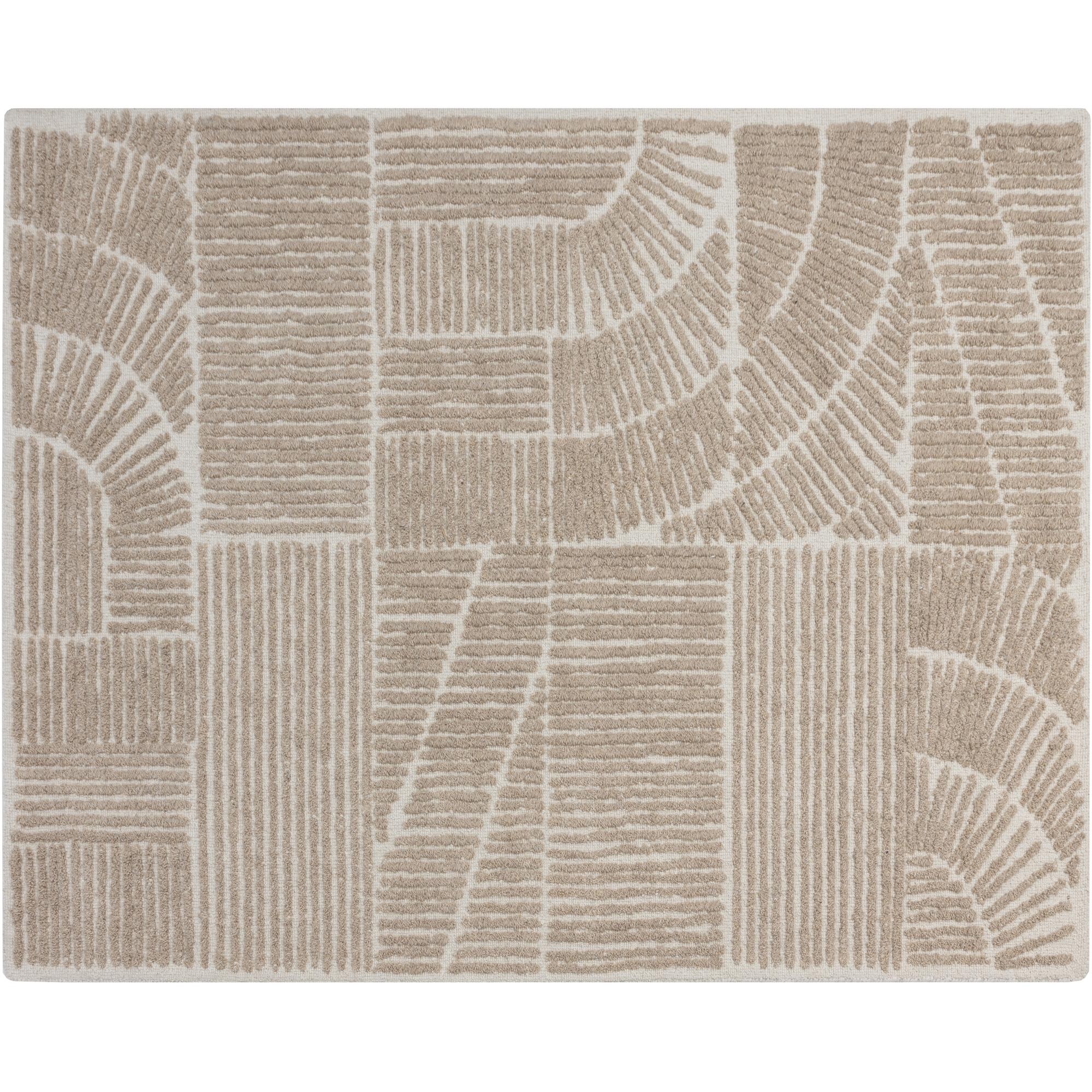 Formed from the carved plush pile of the Corinthia Rug is an abstract design composed of varying line arrangements. Hand-woven from a blend of wool and viscose for a luxuriously soft finish.