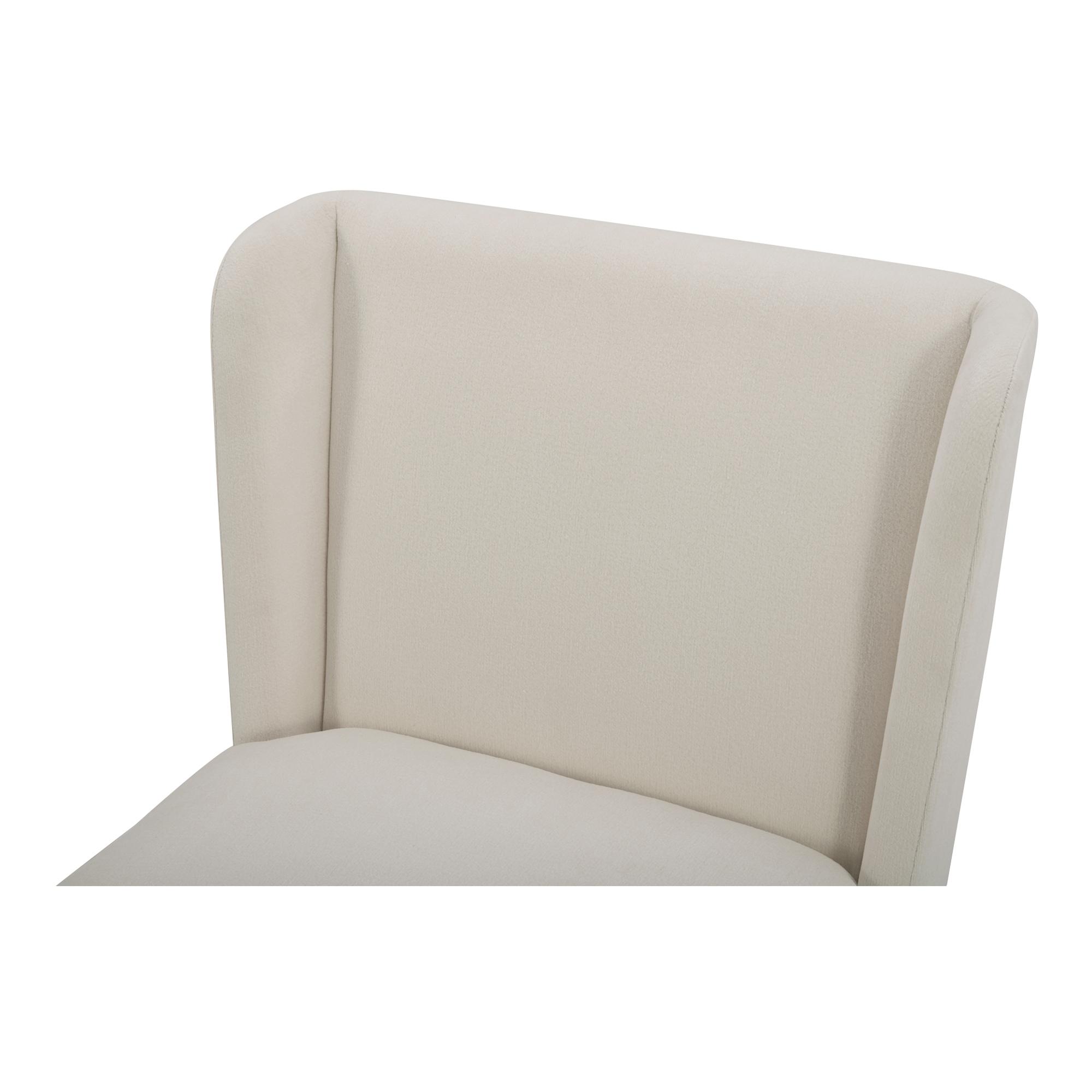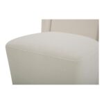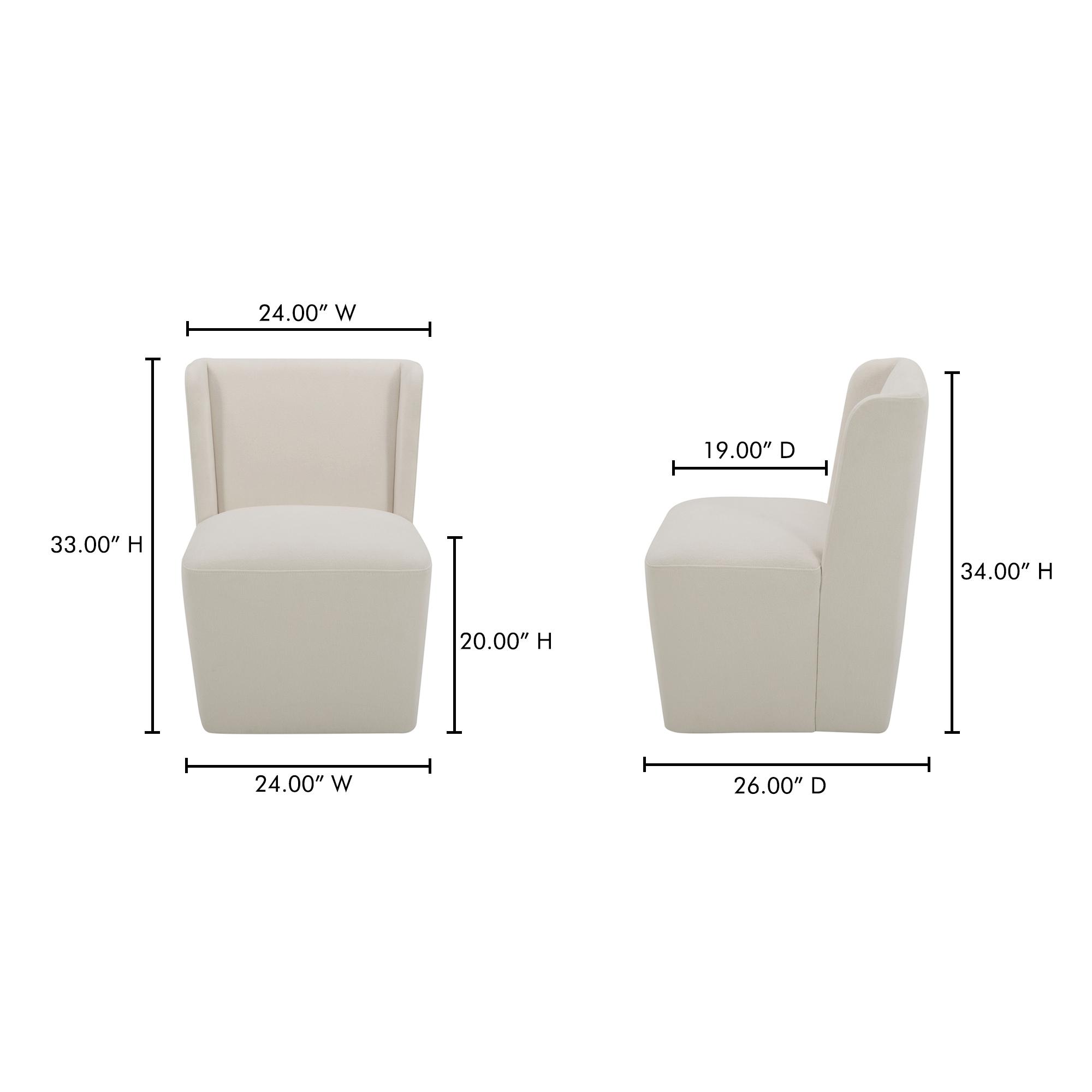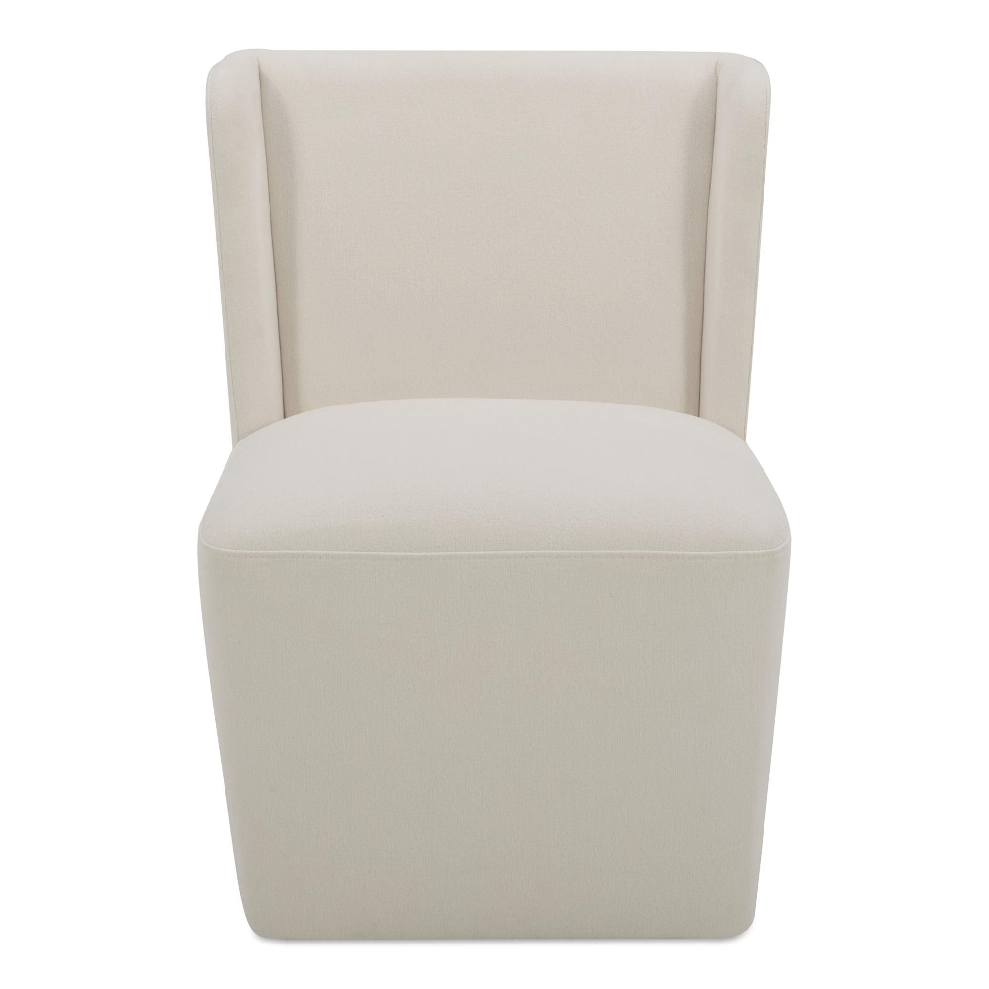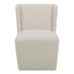 The Cormac rolling dining chair is all about comfort with a generously padded seat and backrest, a slight curve of the back and caster wheels that effortlessly glide across the floor. Crafted from high-performance fabric that is soft to the touch yet resilient against stains, spills, and daily wear.