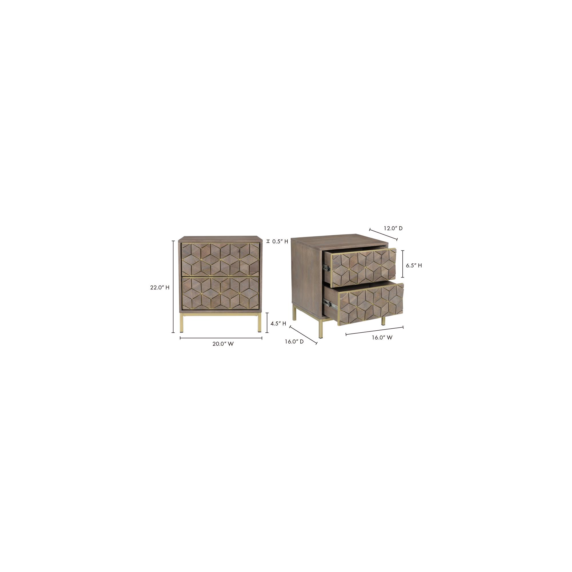 The Corolla drawer chest is an art deco-inspired with a modern twist. Constructed with solid mango wood, this piece makes it resistant to major wear and tear. Its warm tone and intricate drawer fronts and brass detailing provides character and practicality into your bedroom space. Its ethically sourced wood material adds a unique touch of quality to the bedroom.
