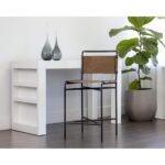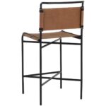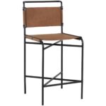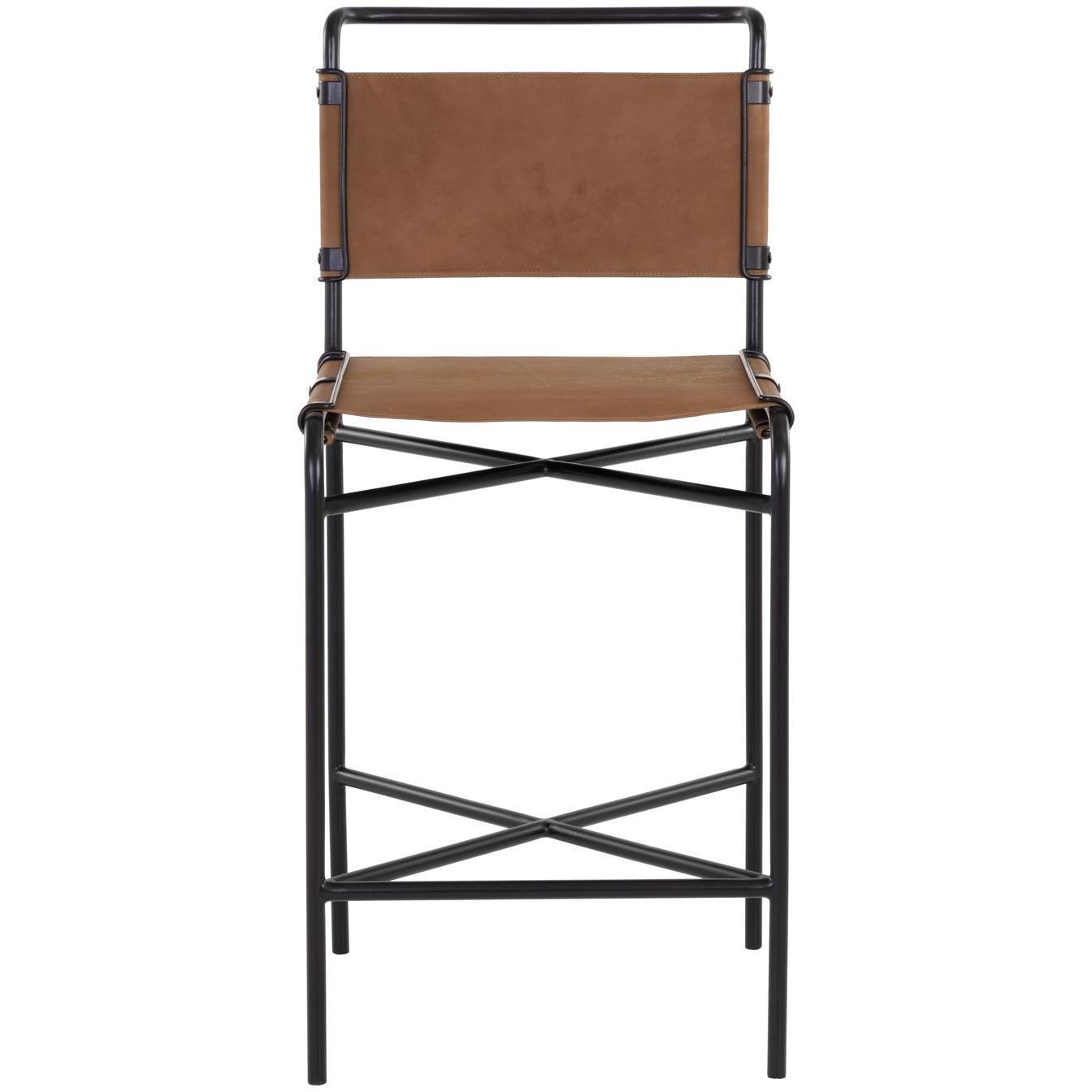 Fusing mid-century modern design with a tinge of industrialism, this charming counter stool is a stylish addition to any space. Upholstered in cognac leather and completed with a matte black steel base. Handle with Care: This design has been crafted with 100% leather. Leather is a natural material; as such, colour variations, markings, wrinkles, grooves and light scratches are acceptable and appreciated characteristics. No two pieces are alike. Visit our Product Care page for more information on how to ensure the lasting beauty of this piece. Made in India. With refined craftsmanship, this design was brought to life by skilled local artisans. Due to the nature of handcraftsmanship, unique imperfections such as fissures, markings and variations in colour and shape are welcomed and appreciated characteristics for a truly one-of-a-kind piece.