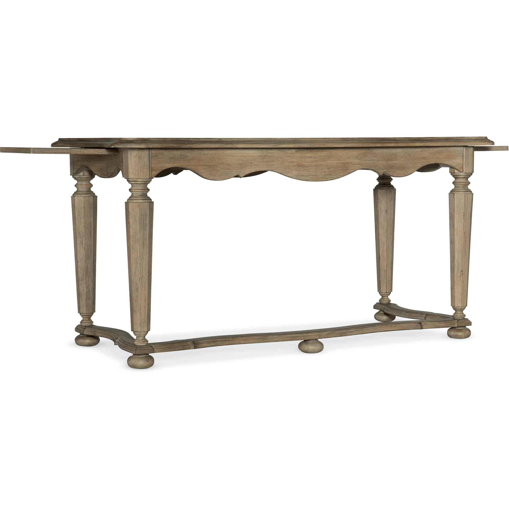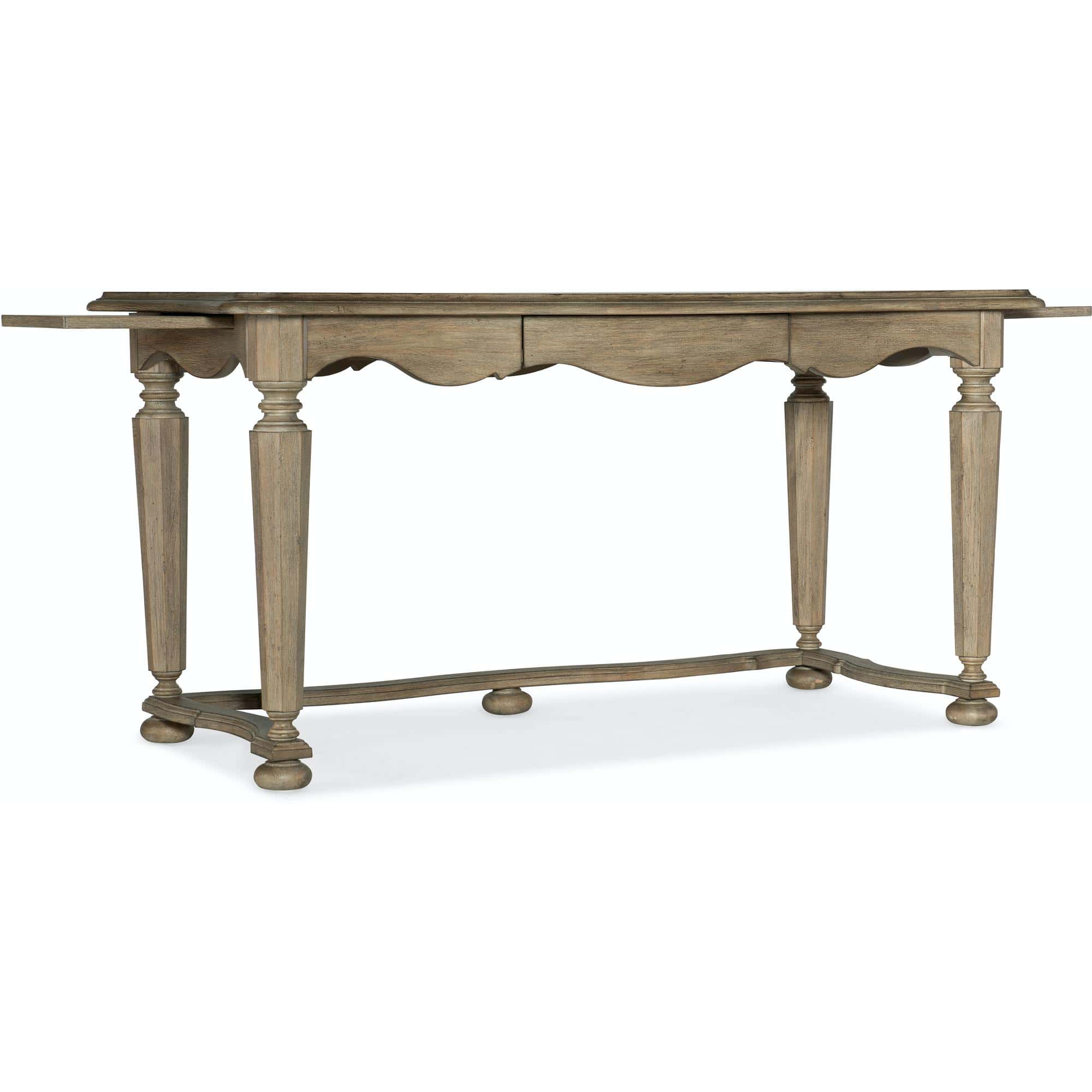 Finish: A wire-brushed, artisan, light natural finish with reclaimed character is on exotic beautiful Acacia wood, known for its rustic charm, tactile hand, knots and color variations in serene organic hues of gray, rose and natural. Distressing includes wire brushing, rock, worm holes and scratch antiquing.