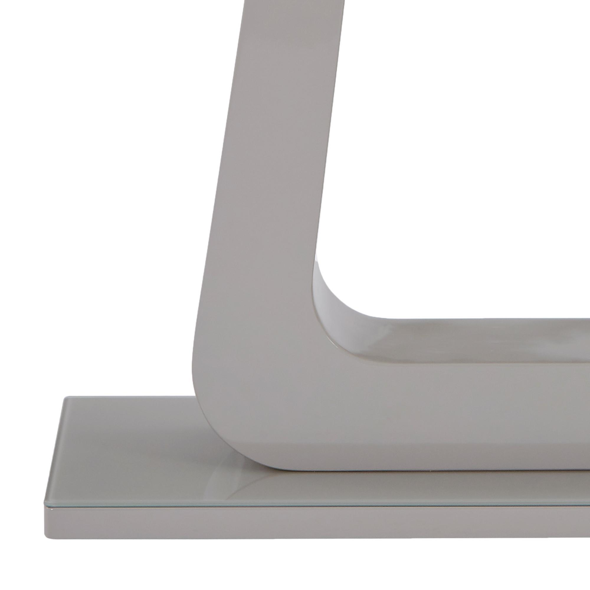 The high gloss, grey painted finish gives this table a high end feel without busting your budget. Topped with a tempered grey-tinted glass on the table top as well as the base, this table will elevate the design of any room – a welcoming punch of style in a entryway or hallway. The fun, modern pedestal base will start many conversations. Neutral colouring allows for an easy blend with many decor styles.
