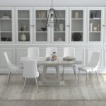 Corvus/Devo 7pc Dining Set in Warm Grey Table with White Chair