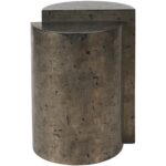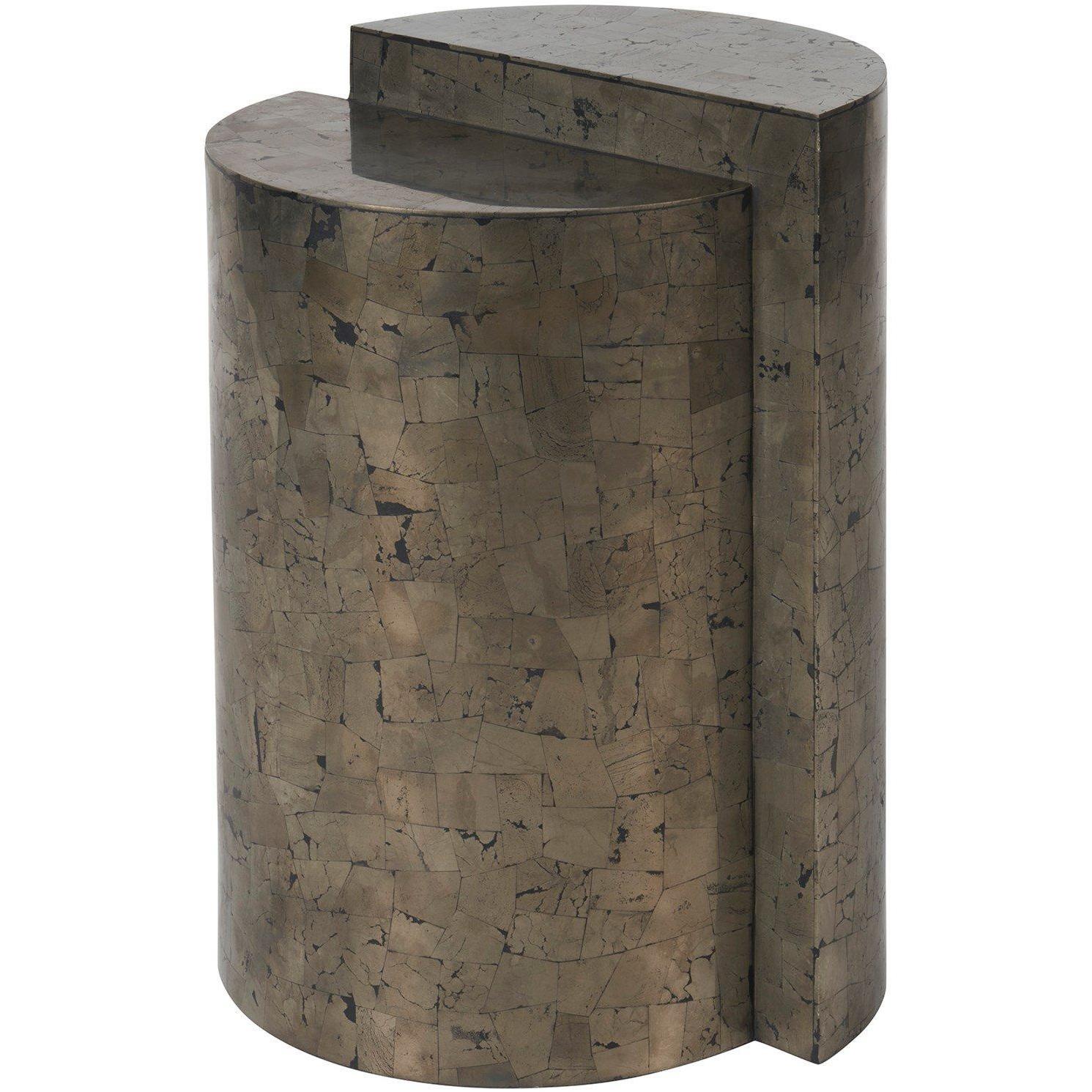 The Cosmo End Table, with its full-bodied Pyrite finish, artfully plays with balance and asymmetry across two distinct levels. This piece brings a darker, moodier essence to modern design, blending functionality with an avant-garde aesthetic that challenges traditional forms and invokes a contemplative, sophisticated vibe.