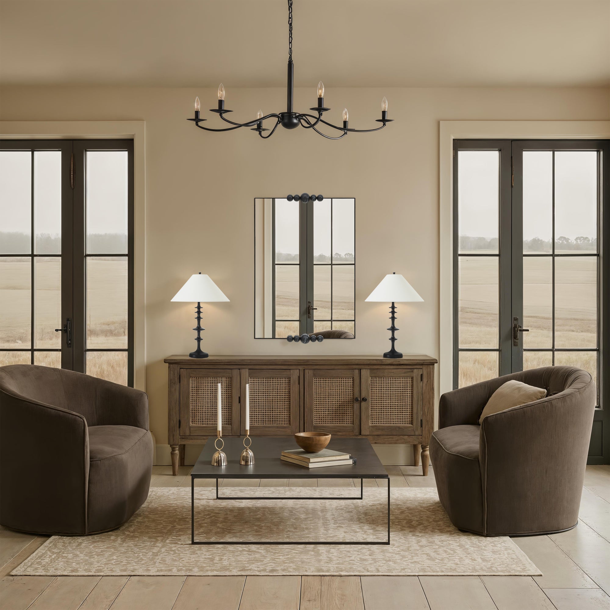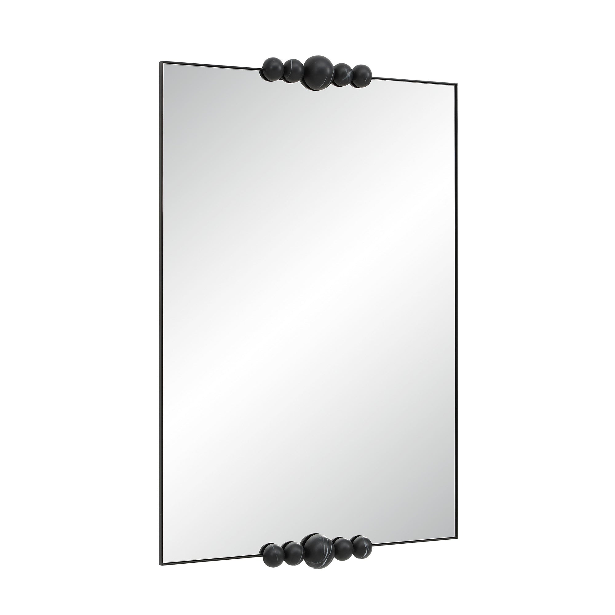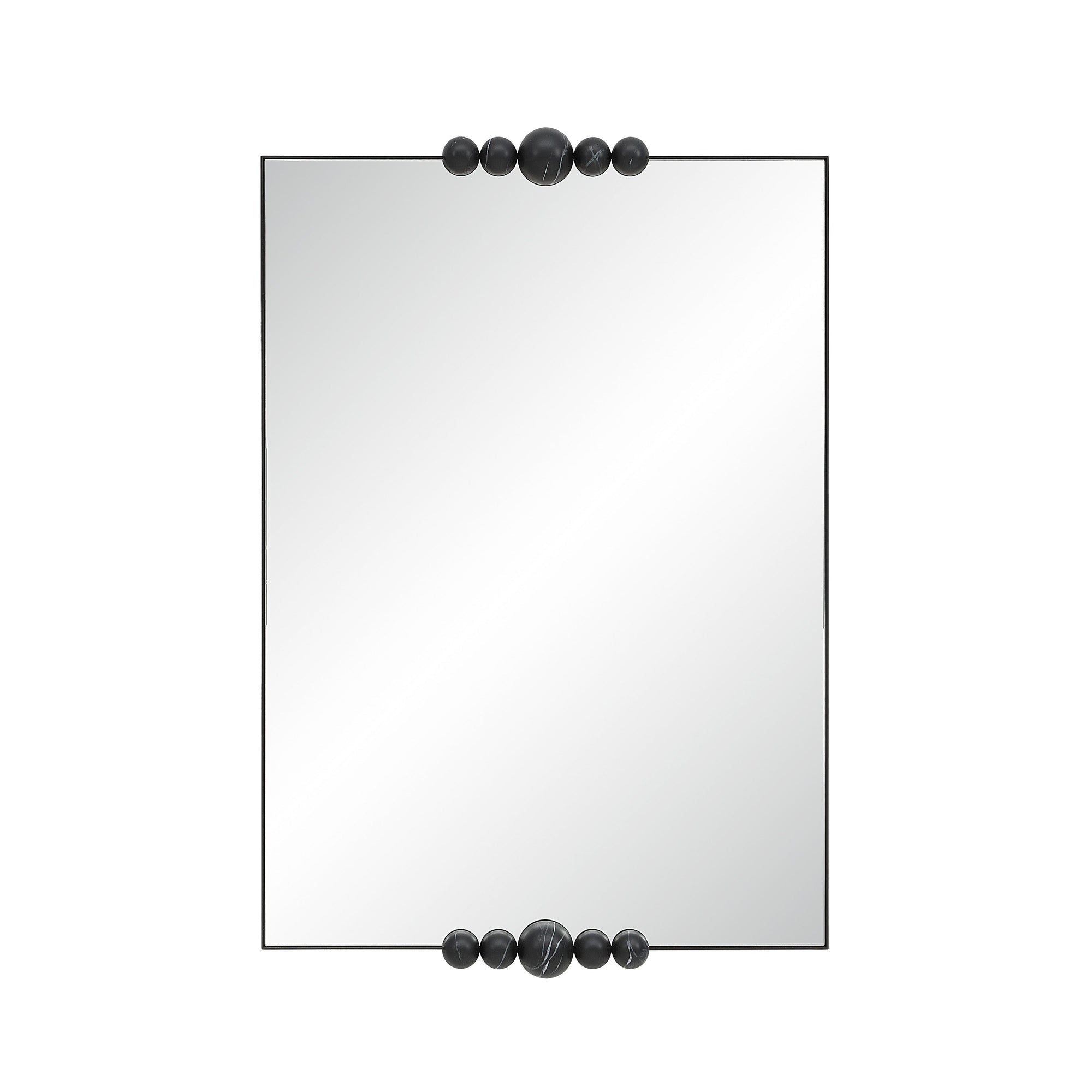 Bring bold character to any modern interior with the Cosmos wall mirror. Its matte black iron frame delivers clean, architectural appeal, while the crystal-clear glass ensures a true, seamless reflection. Accented with sculptural black marbled half-spheres, it introduces subtle artistry and texture. Both stylish and durable, this mirror enhances contemporary spaces with effortless sophistication.