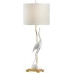 Modern meets classic on this gold lamp complete with matte white crane silhouette