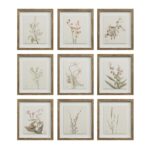 Traditional style is guaranteed when you make this timeless set of botanical wall art part of your decorating scheme. Each of its walnut veneer-framed pieces is designed with a muted colour palette showcasing a variety of beautiful blooms. Hang this set as a grid of nine to make a big statement or break it down into smaller groups for multiple impacts.