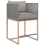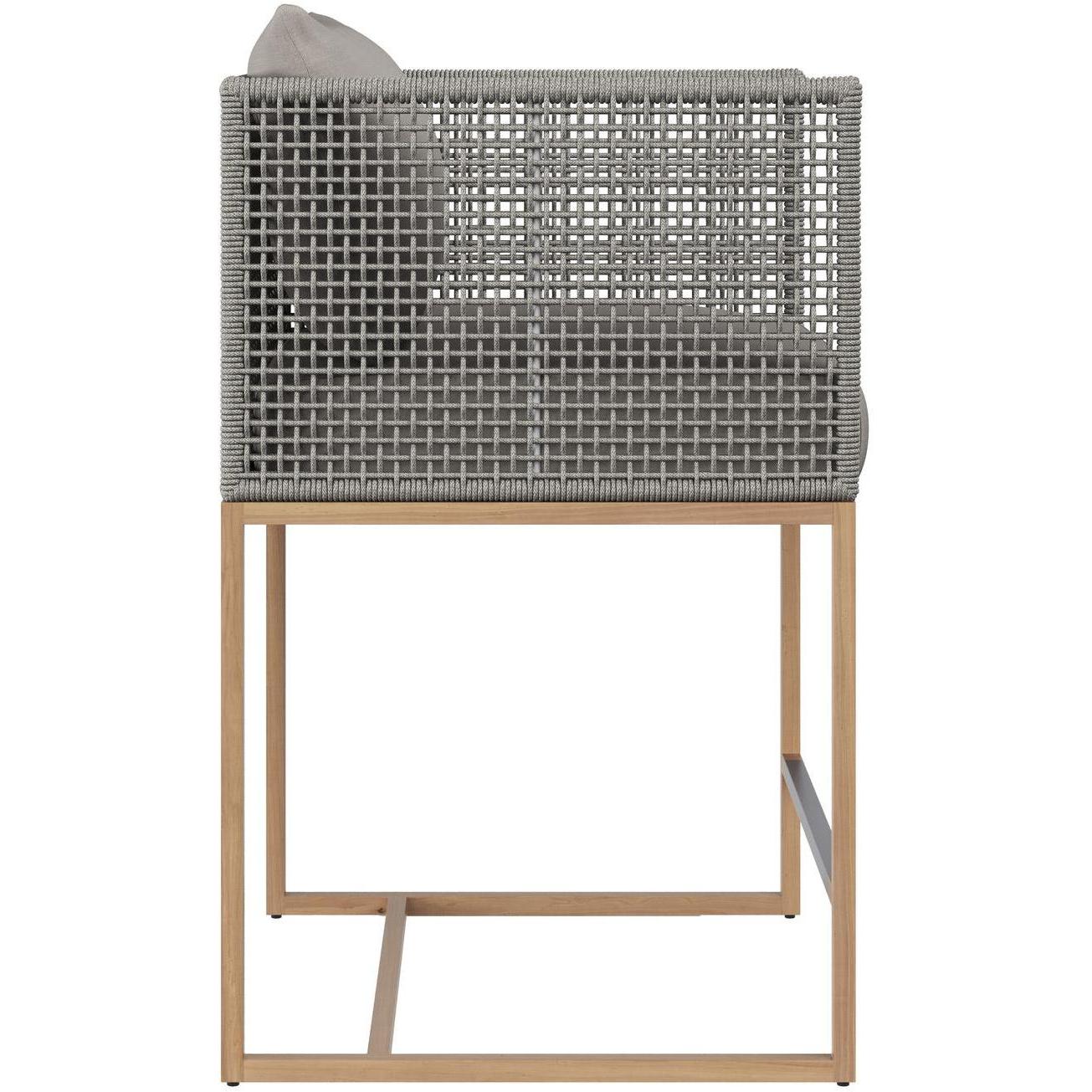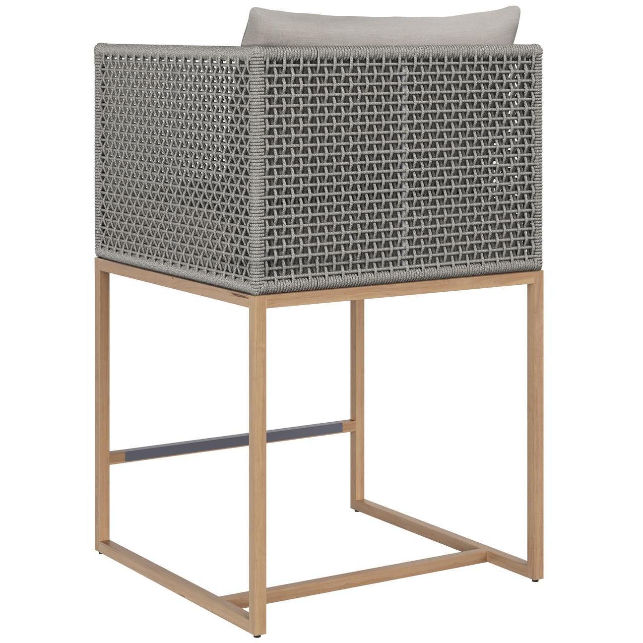 This outdoor counter stool from our Outdoor by SUNPAN collection will create a sophisticated, outdoor dining space. Features a streamlined design in palazzo taupe fabric with grey weave that sits atop a powder-coated aluminum taupe frame. Finished with a natural teak wood base. Suitable for indoor and covered outdoor spaces.