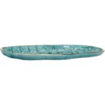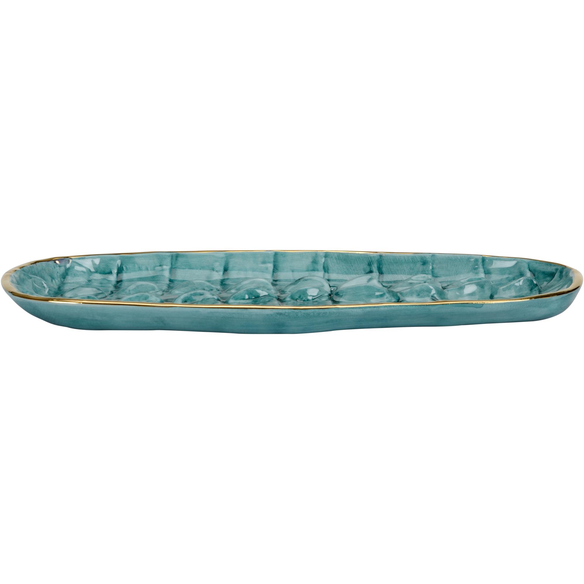 Handcrafted in Italy, this beautiful tray boasts eye-catching texture highlighted by turquoise glaze and a metallic gold trim.
