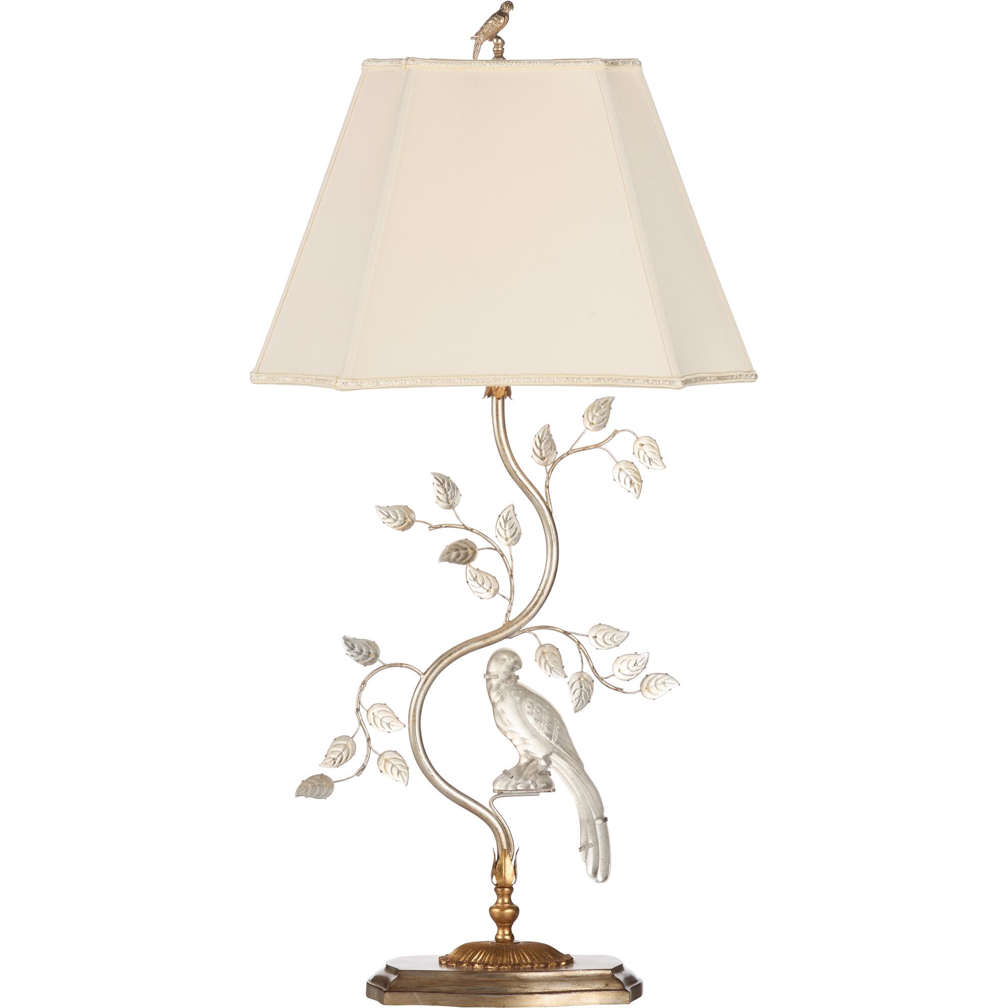 This exquisite lamp combines shimmering crystal and refined metalwork, featuring a delicate bird perched among intricately crafted leaves and finished off with a delicate bird finial. A harmonious blend of nature-inspired elegance and timeless luxury, it brings a touch of enchantment and beauty.