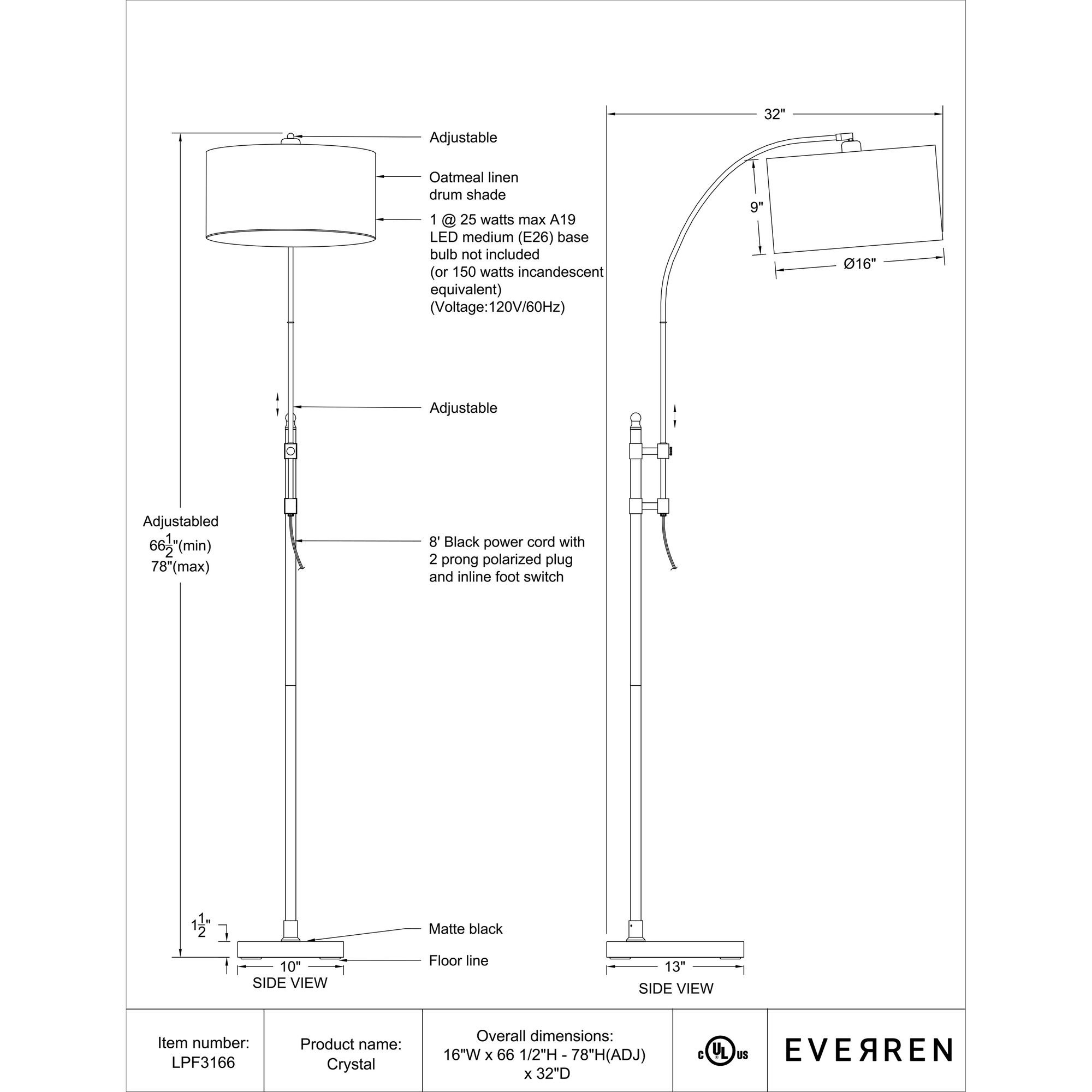Embrace your love of traditional design with the Crystal floor lamp. A stylish choice for a wide variety of decorating schemes, this black beauty perfectly combines classic lines with modern finishes. Flexibility is in play with its height-adjustable body and swivel drum shade that let you customize the lighting direction in your space to best suit your needs.