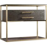 - Finish: The finish is a deep, brown called Midnight. Frame and hardware are brushed brass.