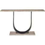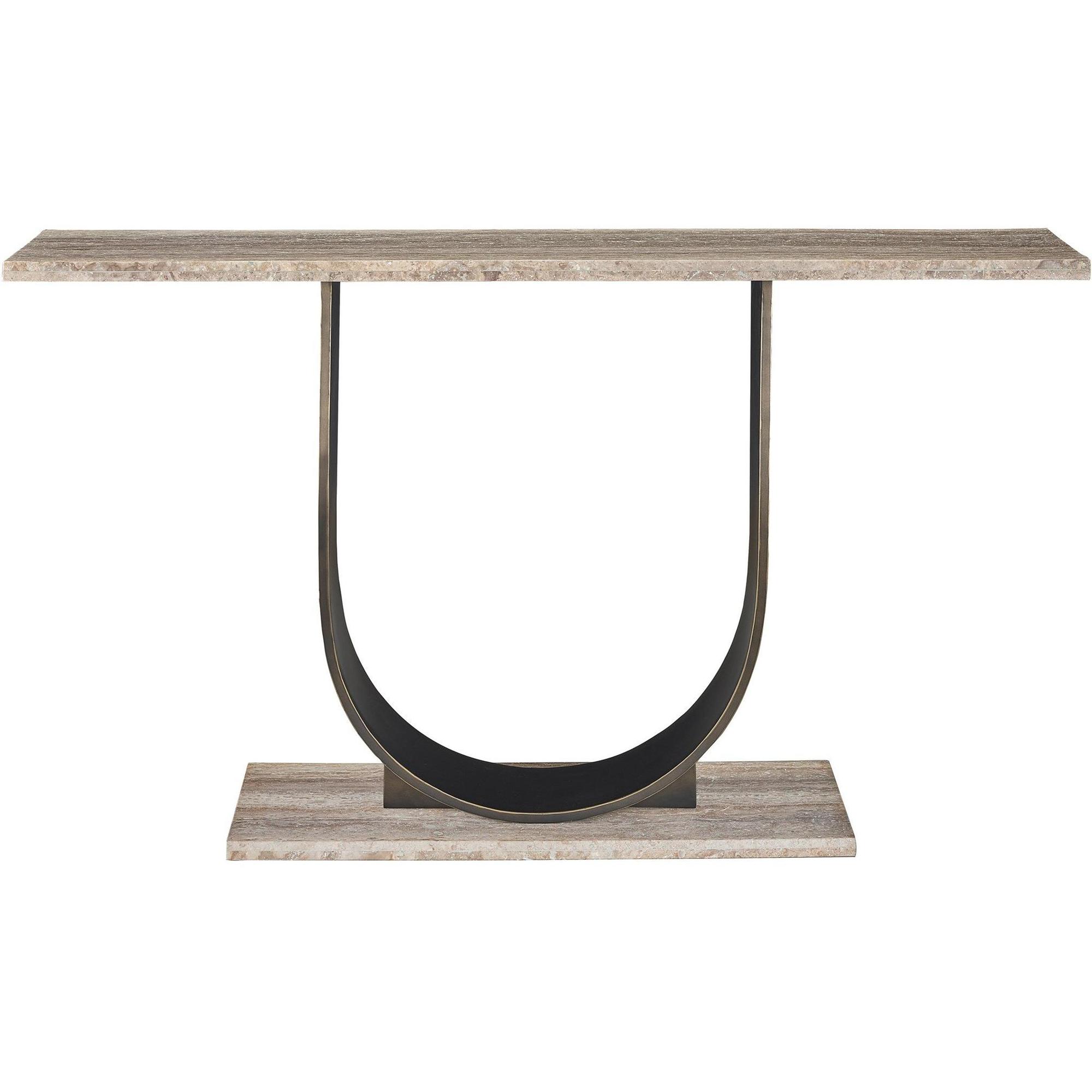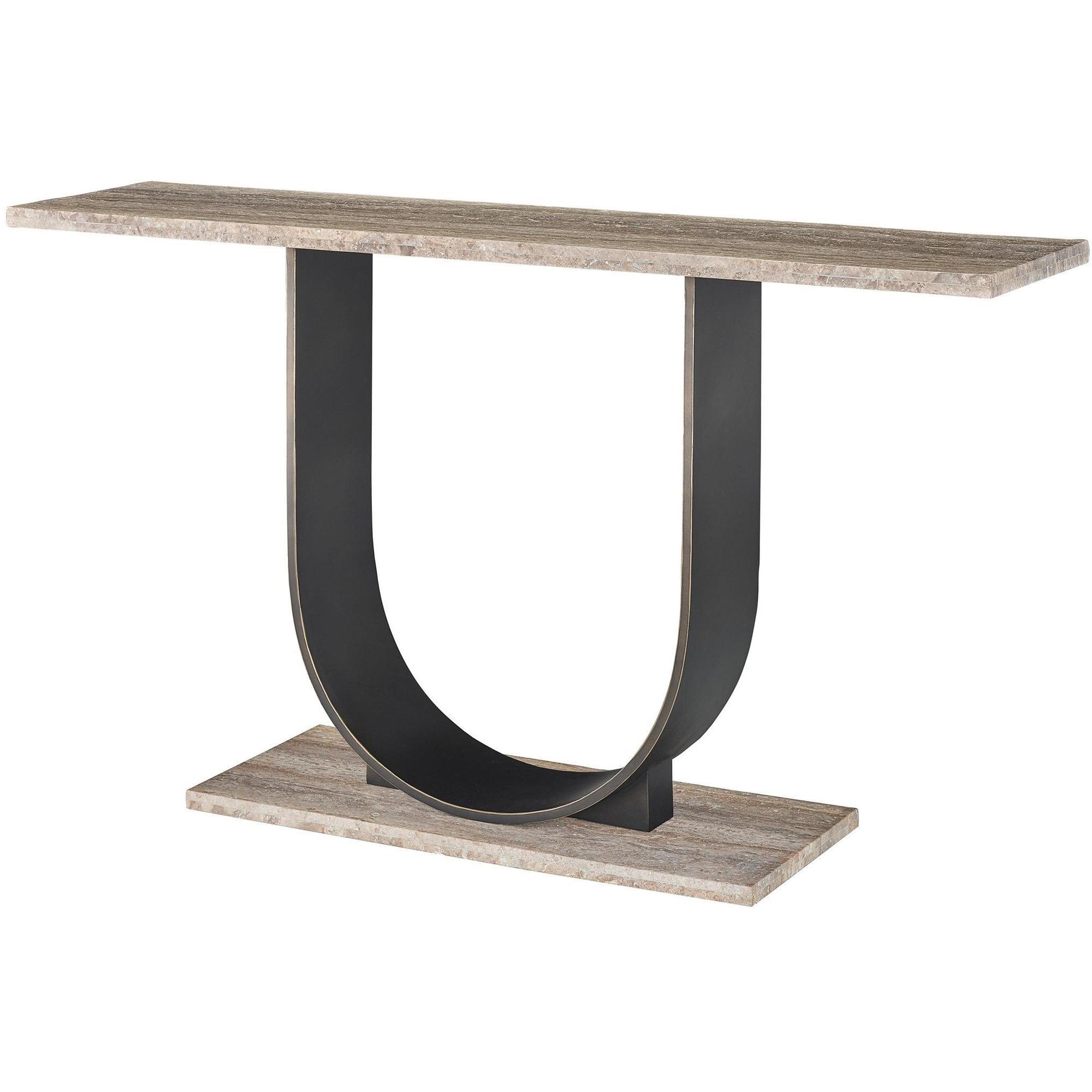 Boasting an artful connection of curves and angles, the Equilibrium Console finds ideal aesthetic balance with a bronzed, bold U-shaped body offset by a top and base featuring a modern, grainy finish.