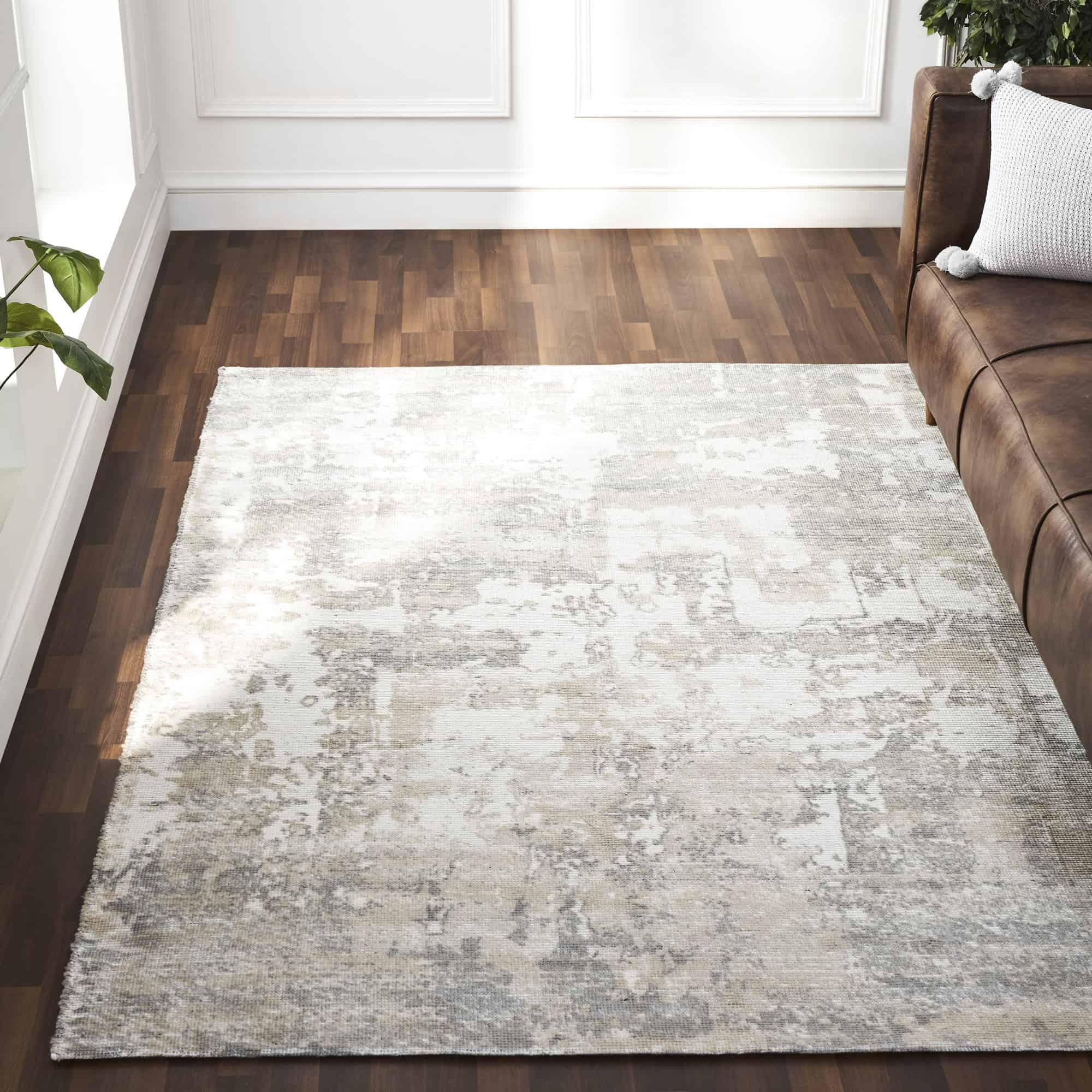 Historical artistic influence lives within this rug design. With a collage of ivory and beige details inside its polyester structure, it elevates the highlights and shadows of pieces in its midst. Featuring six different sizes and structures, starting with a 3×4 foot square an reaching a 9×12 foot rectangle, it can be set in the foyer in one form and the dining room in another.