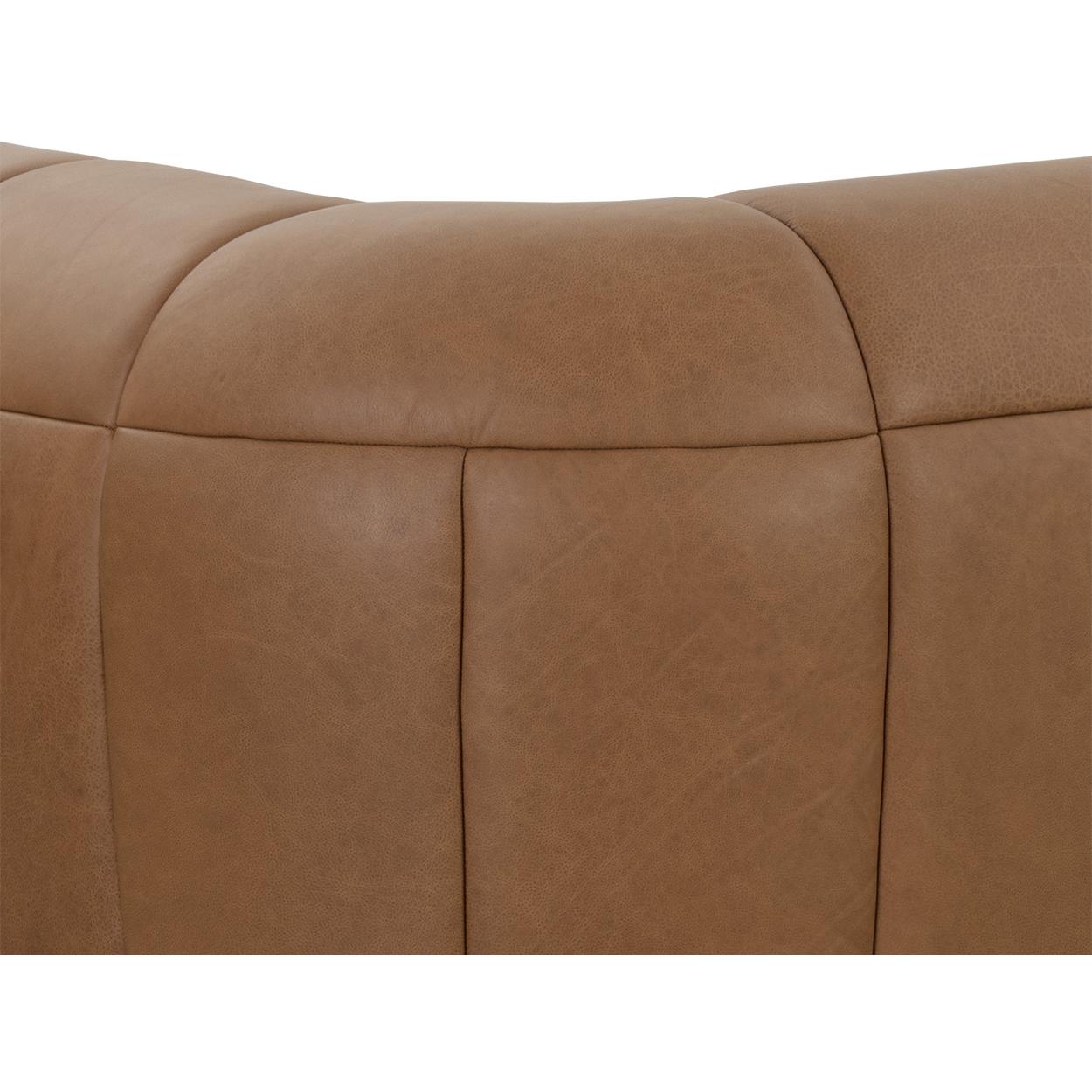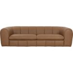 Luxury and comfort blend together in the Cyril Sofa. Vertical channeling and a low rounded profile make this piece stand out in any living space. Generously upholstered in our luxurious lucia cognac Italian leather. Handle with Care: This design has been crafted with 100% aniline leather. Leather is a natural material; as such, colour variations, markings, wrinkles, grooves and light scratches are acceptable and appreciated characteristics. No two pieces are alike. Visit our Product Care page for more information on how to ensure the lasting beauty of this piece.