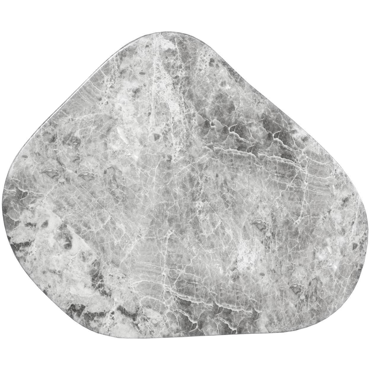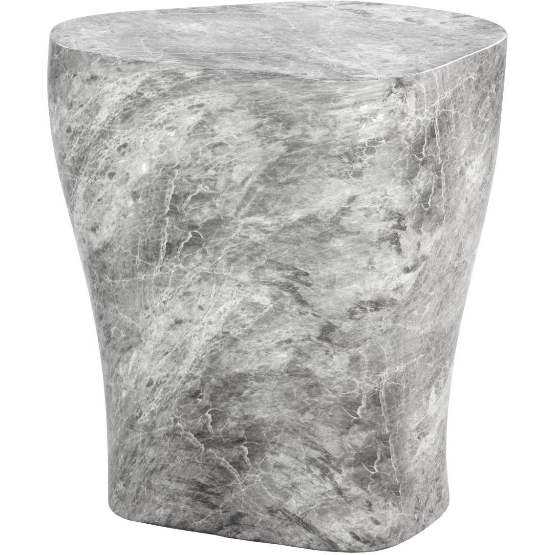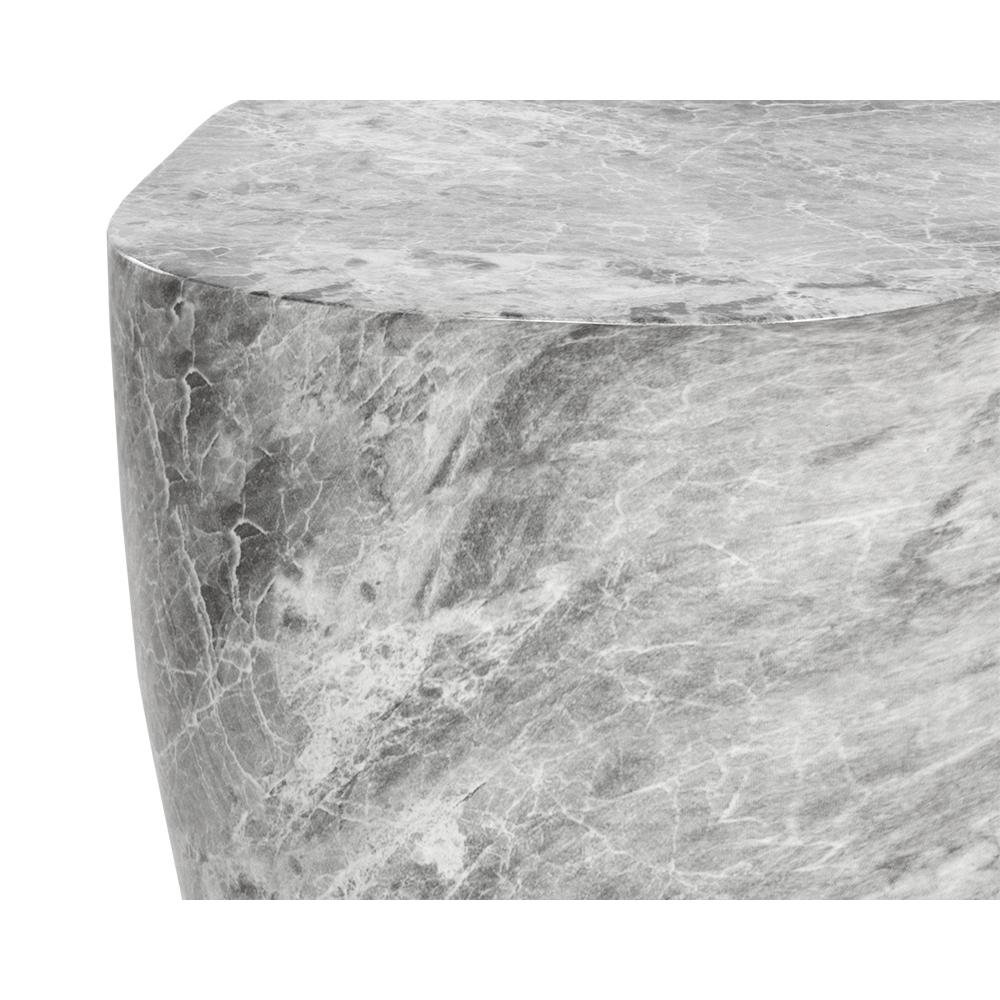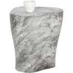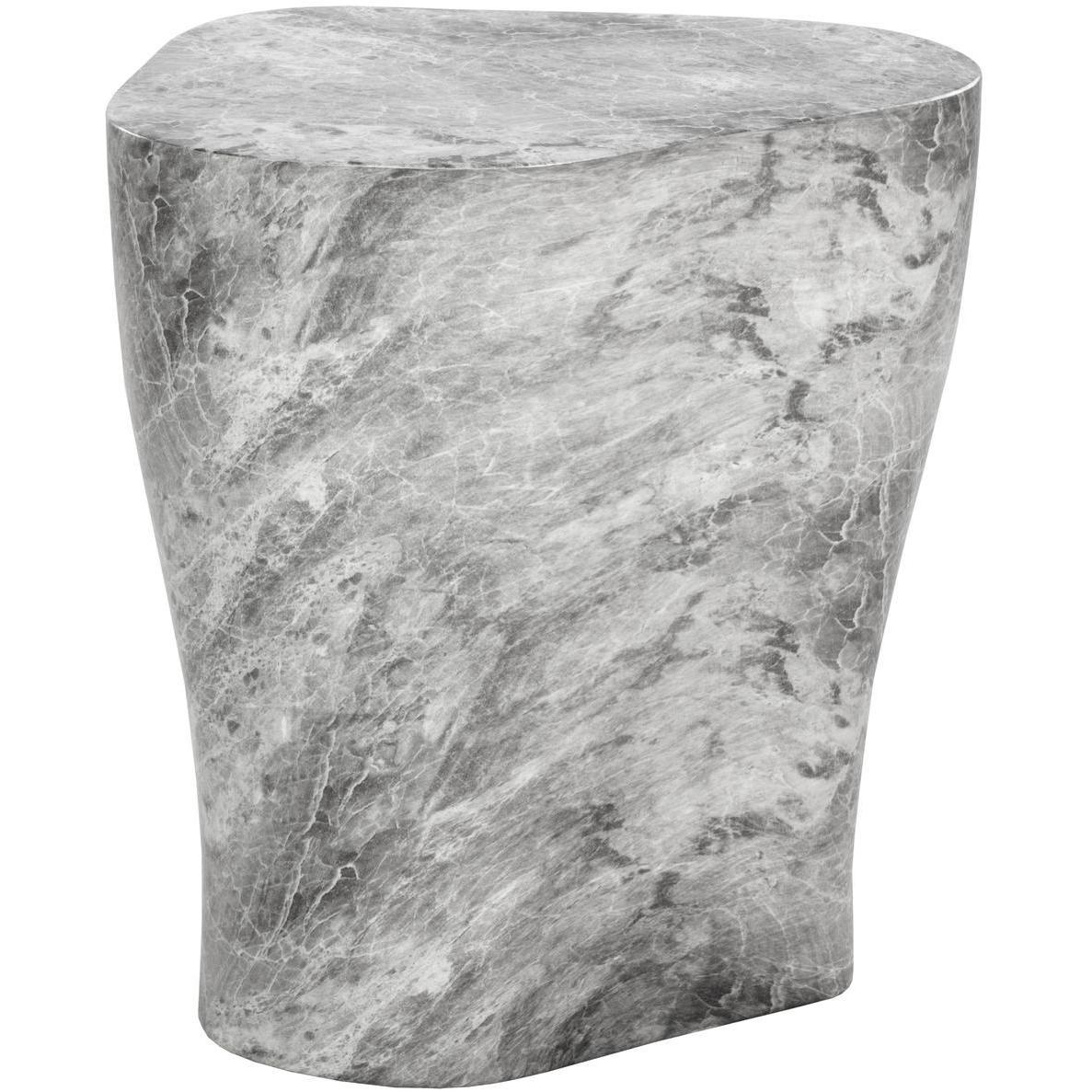 With a distinct curvy design, this large end table is guaranteed to bring allure to any space. Crafted with a grey marble look to provide style and durability in various applications.