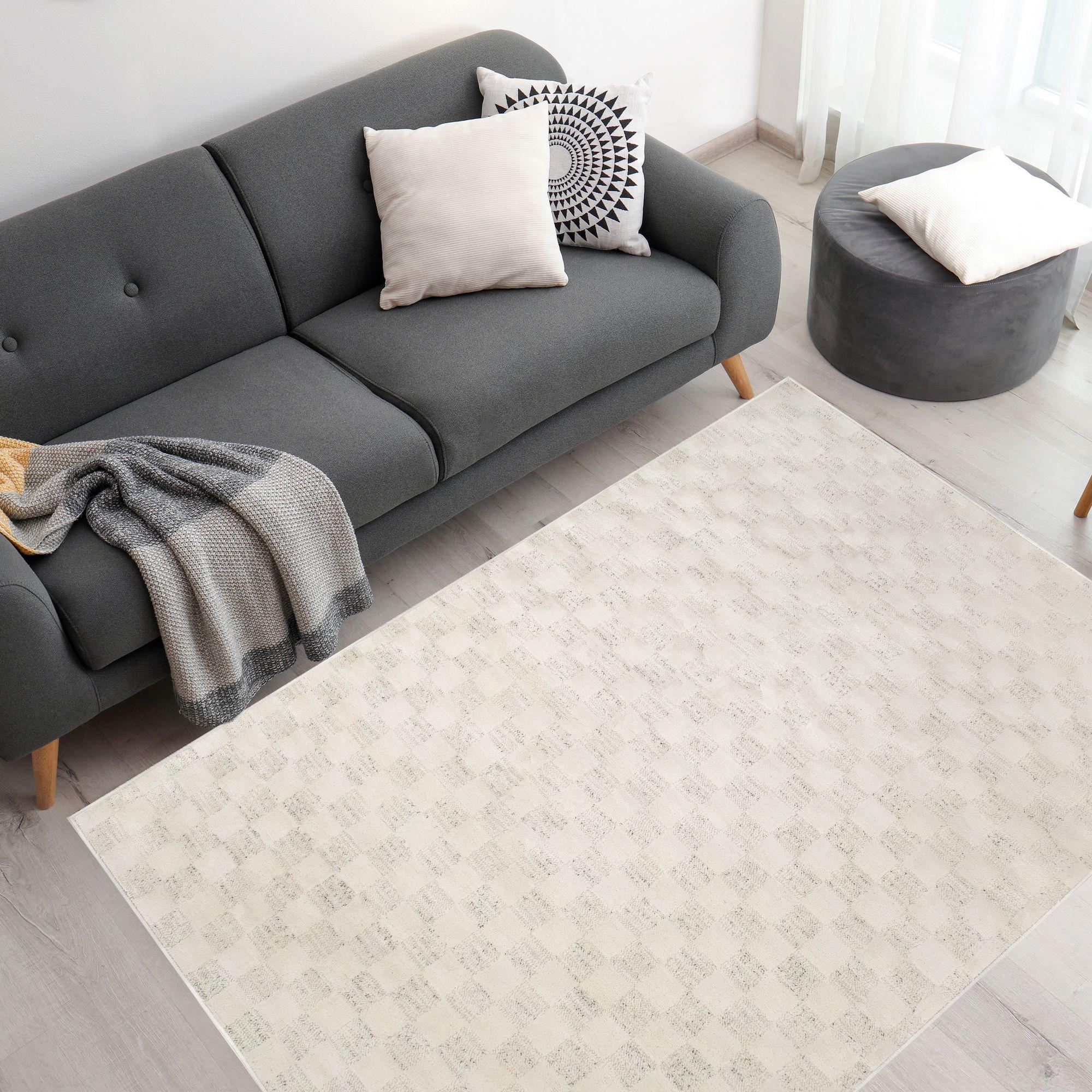 Elevate your living area with the Daila Area Rug, an epitome of comfort and style. Expertly crafted with high-quality polyester, this rug offers long-lasting comfort that you won’t want to step away from. Its 7mm pile height provides a plush feel that guarantees comfort and warmth at all times. designed with an impressive checkered pattern that adds a touch of sophistication to any space. Its unique design combines texture, color, and form, offering an impressive visual appeal that’s bound to attract anyone’s attention.