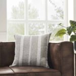 A Zen quality envelops the living or bedroom interior through this pillow design. Styled with complementary throw blankets or darker pillow designs, its soft olive and white tons pop while maintaining poise. The 20-inch square structure with feather down filling, matches the quality of the exterior to the inside.