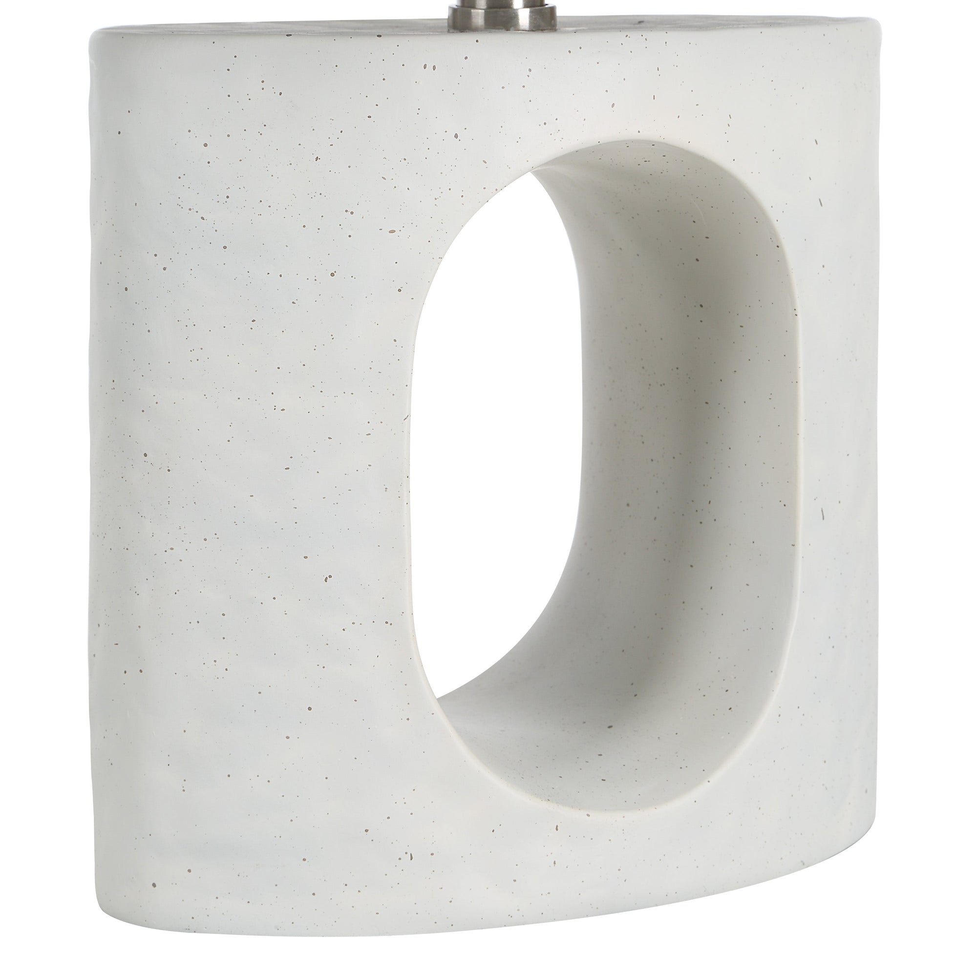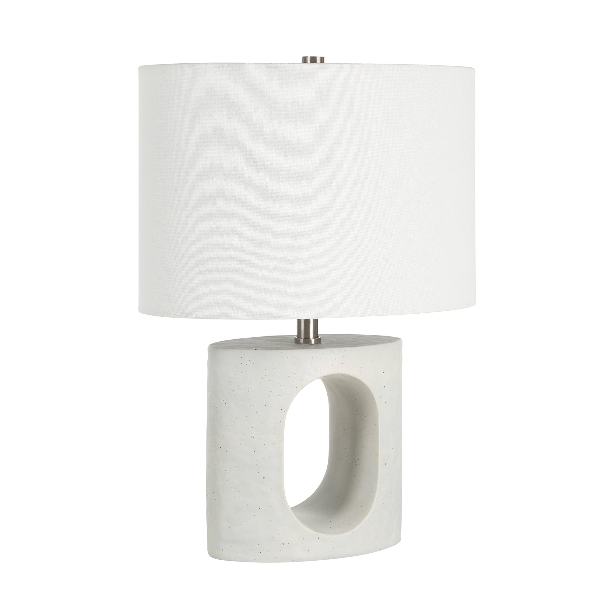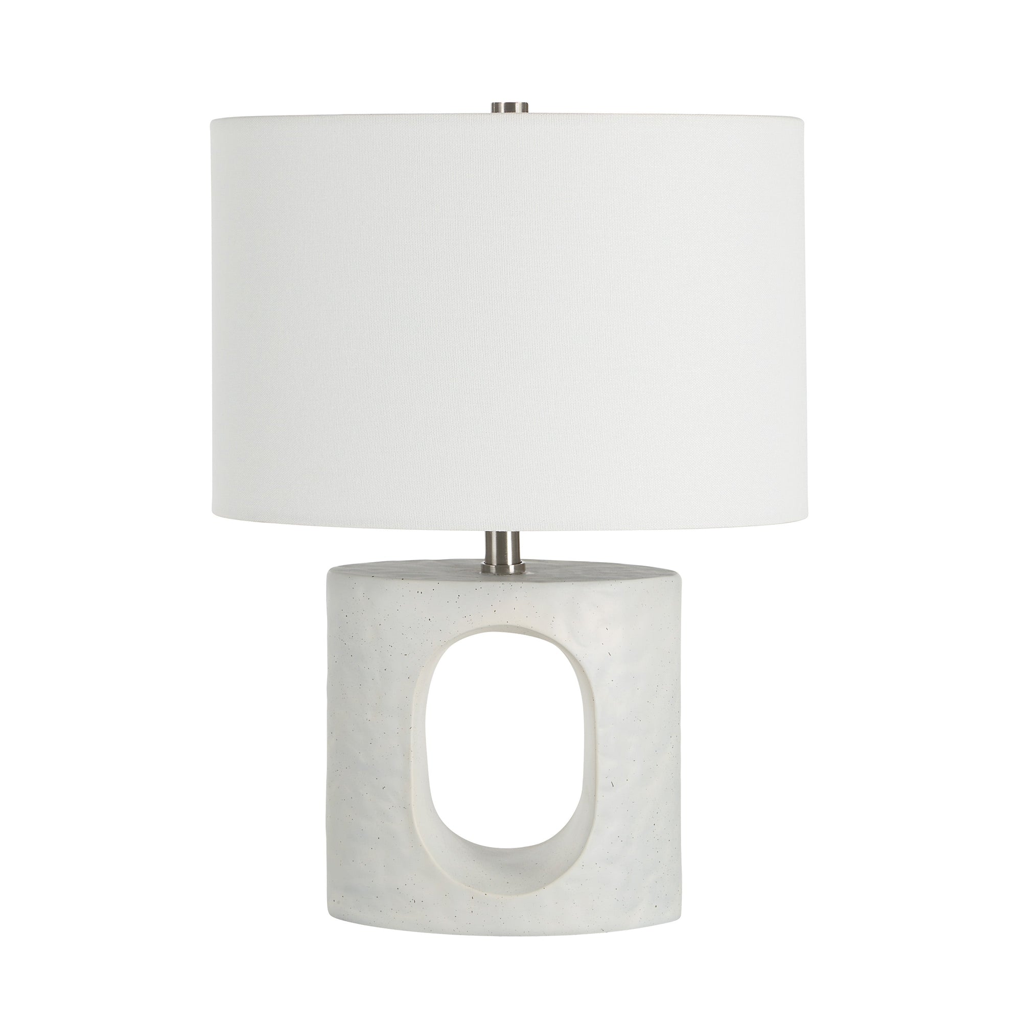 The Damian table lamp combines artistic form with subtle elegance. Its sculpted matte white base, accented with antique brass-plated accents, creates a refined yet eye-catching silhouette. Topped with an off-white linen drum shade, it casts a gentle, welcoming glow, making it a versatile addition that brings warmth, style, and a touch of modern sophistication to any living room or bedroom.