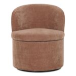 The Dane swivel dining chair adds sumptuous comfort with heritage pink upholstery enveloping its gentle curves. A 360-degree swivel base facilitates effortless engagement, perfect for intimate conversations.