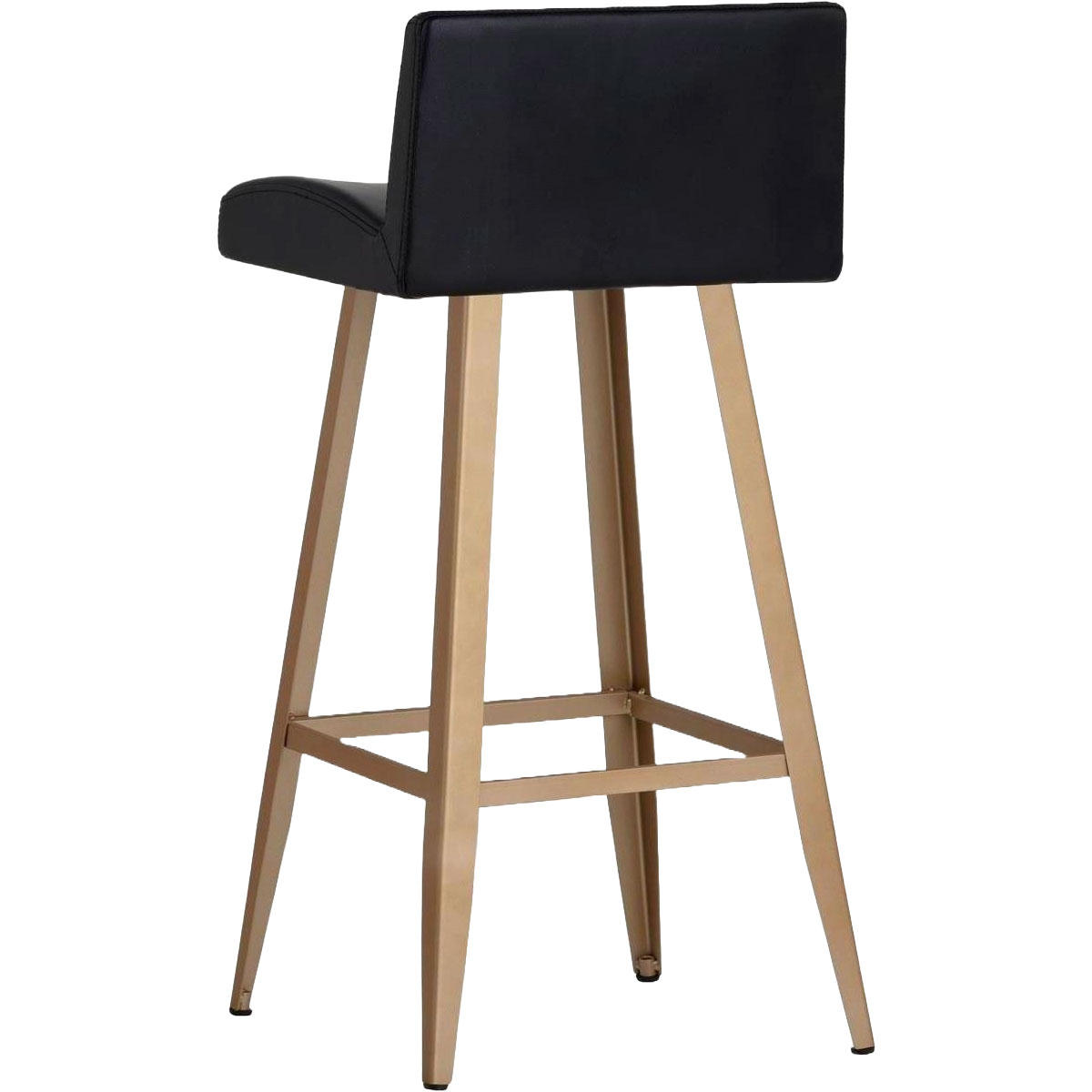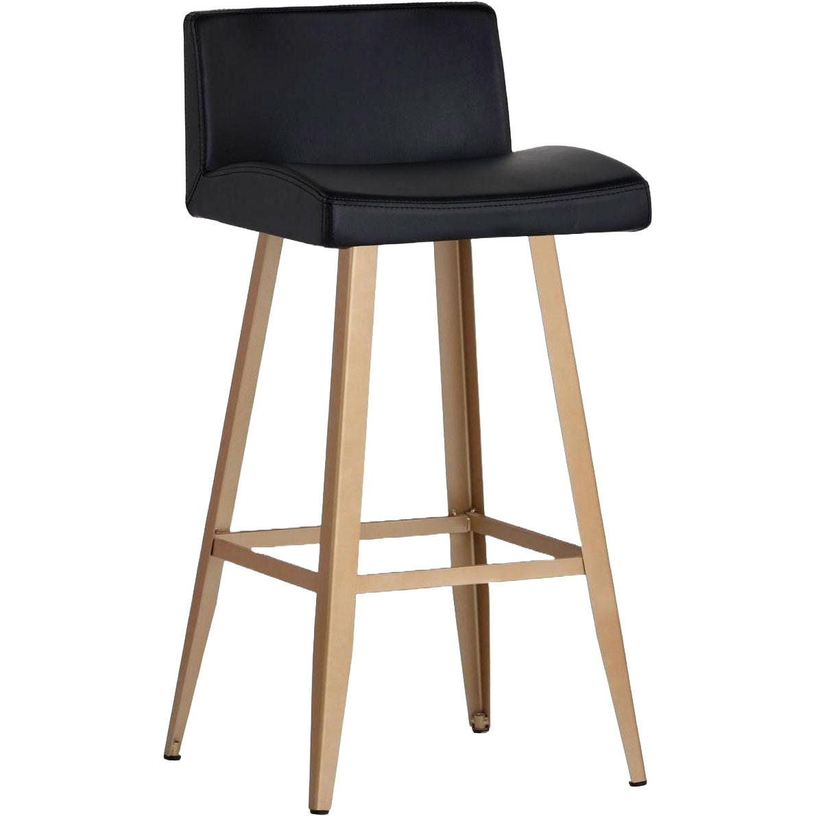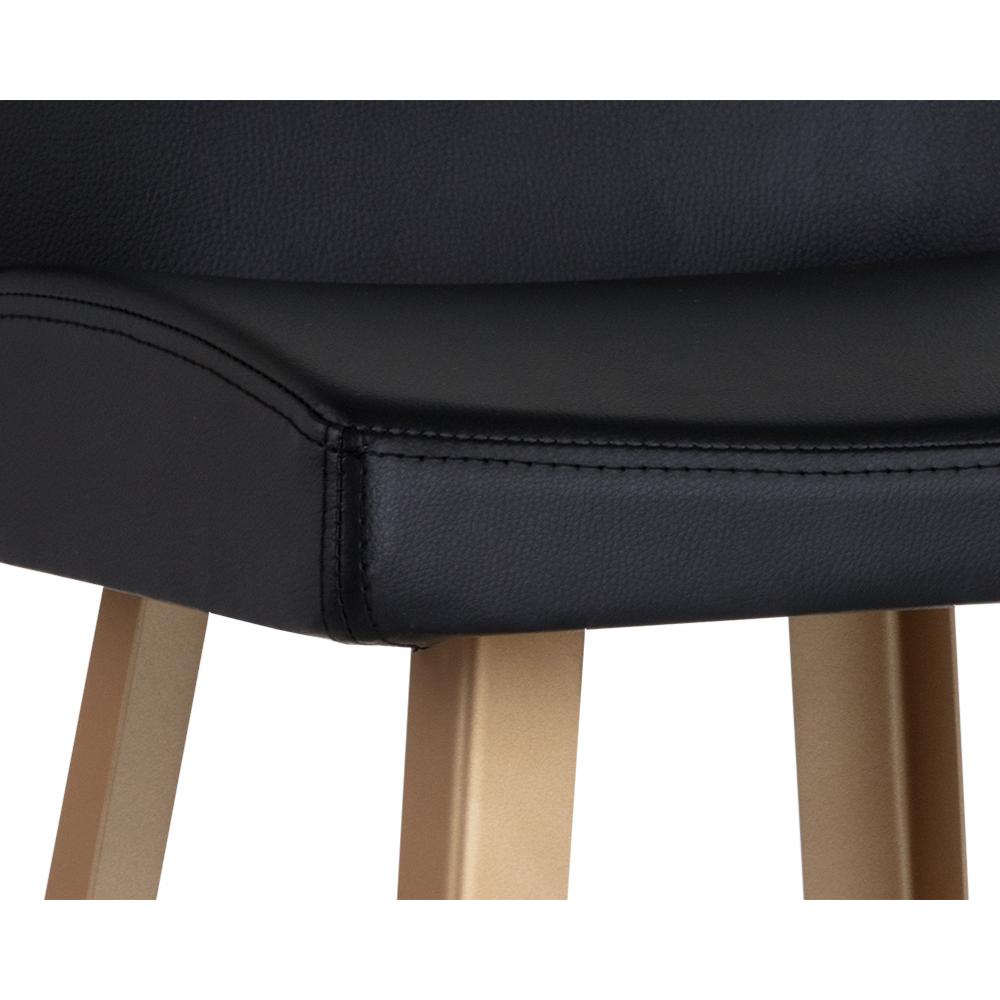 A chic counter stool featuring a low seatback upholstered in antique black faux leather and finished with a brushed champagne gold steel frame. Suitable for various dining, kitchen and bar spaces of all sizes. Champagne gold steel has a copper undertone. Handle With Care: This design has been crafted with faux leather. Faux leather is manufactured to reflect the natural characteristics of leather; as such, colour variations, markings, wrinkles, grooves, and light scratches are appreciated characteristics. No two pieces will be alike. Visit our Product Care page for more information on how to ensure the lasting beauty of this piece.