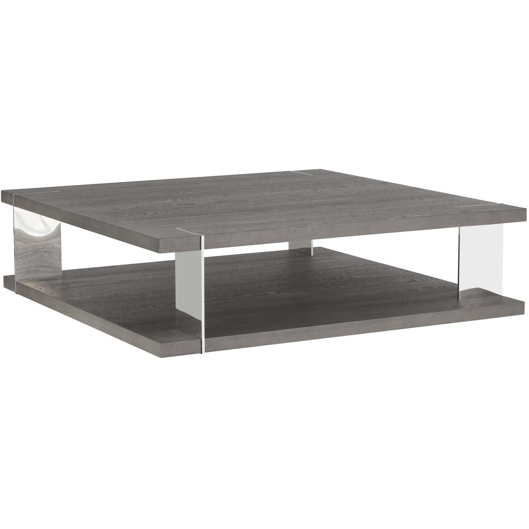 A modern square coffee table crafted with smoked oak and finished with stunning polished stainless steel. Features a shelf for extra storage.