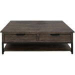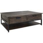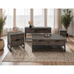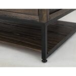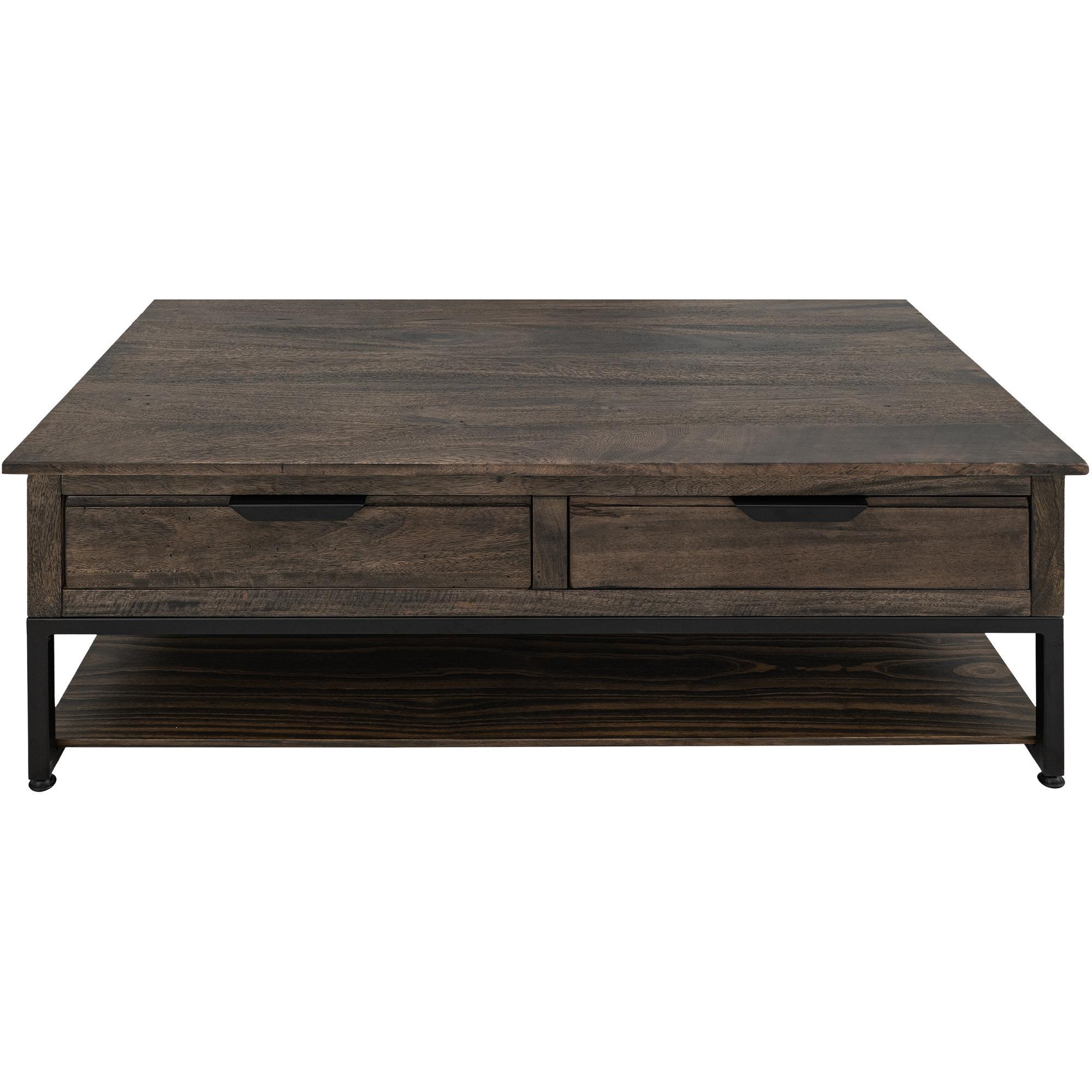Inspired by transitional design, the Dark Mita occasional tables elegantly combine the warmth of wood with the sleek industrial style of metal elements. Each piece in this collection is expertly crafted from sustainable mango and melina wood, hand-distressed to create a captivating finish that showcases its natural grain patterns. In addition to its attractive design, the Dark Mita collection offers practical features. The coffee table includes a sturdy metal base for support, a spacious tabletop for everyday use, four drawers with sleek black handles for storage, and a lower shelf ideal for displaying decorative items or organizing books and magazines. This combination of style and utility ensures the Dark Mita collection is a beautiful and functional addition to any living space.
