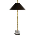 This sophisticated lamp features a beautifully hand-hammered metal body, showcasing artisanal craftsmanship with its textured surface that catches light in captivating ways. The elegant crystal base adds a touch of luxury and modern refinement, offering a sleek contrast to the lamp’s rustic, hammered finish. Topped with a chic black fabric shade.