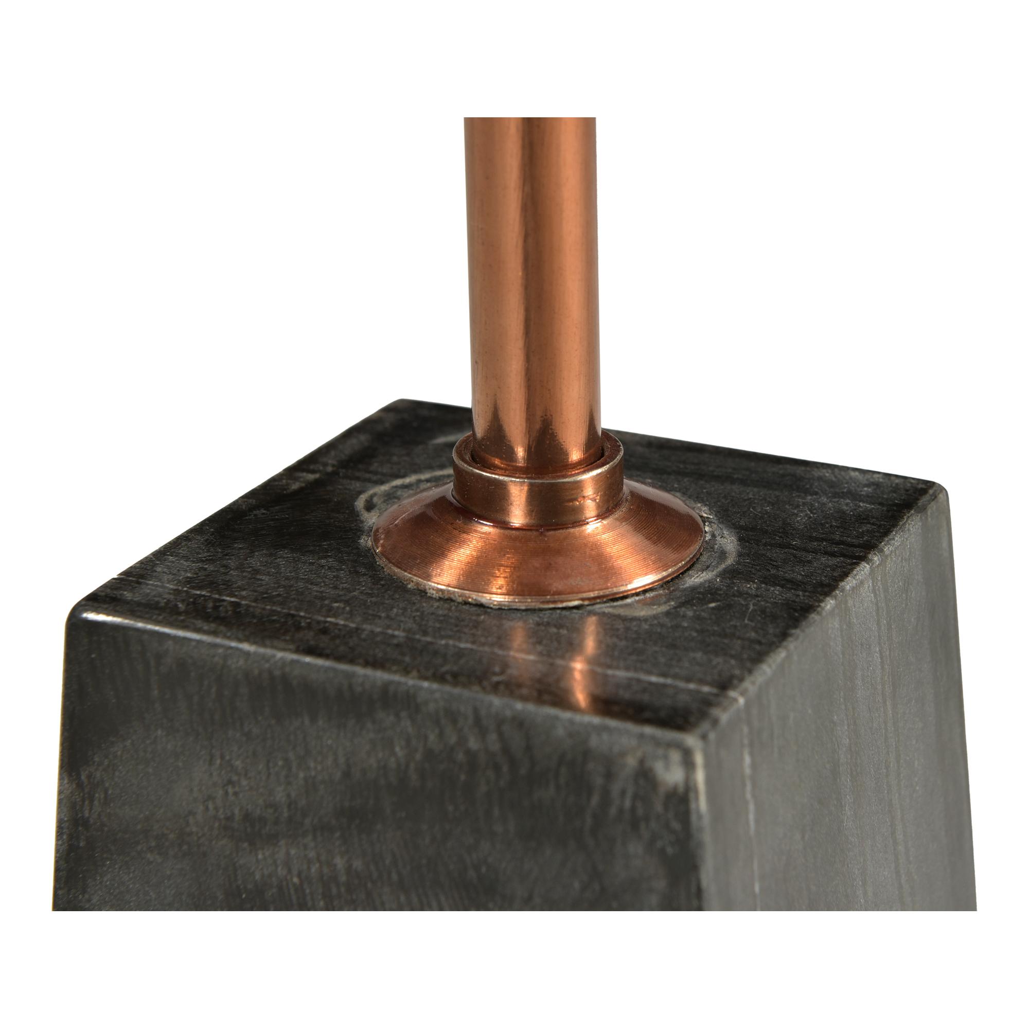 - Grey marble cylindrical base, brass detailed iron pedestal & white marble tabletop