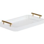 Generous serving tray, perfect for entertaining, or gathering objects on a counter or coffee table. In sleek white with gold handles. Available in other colors. (Search: delilah)