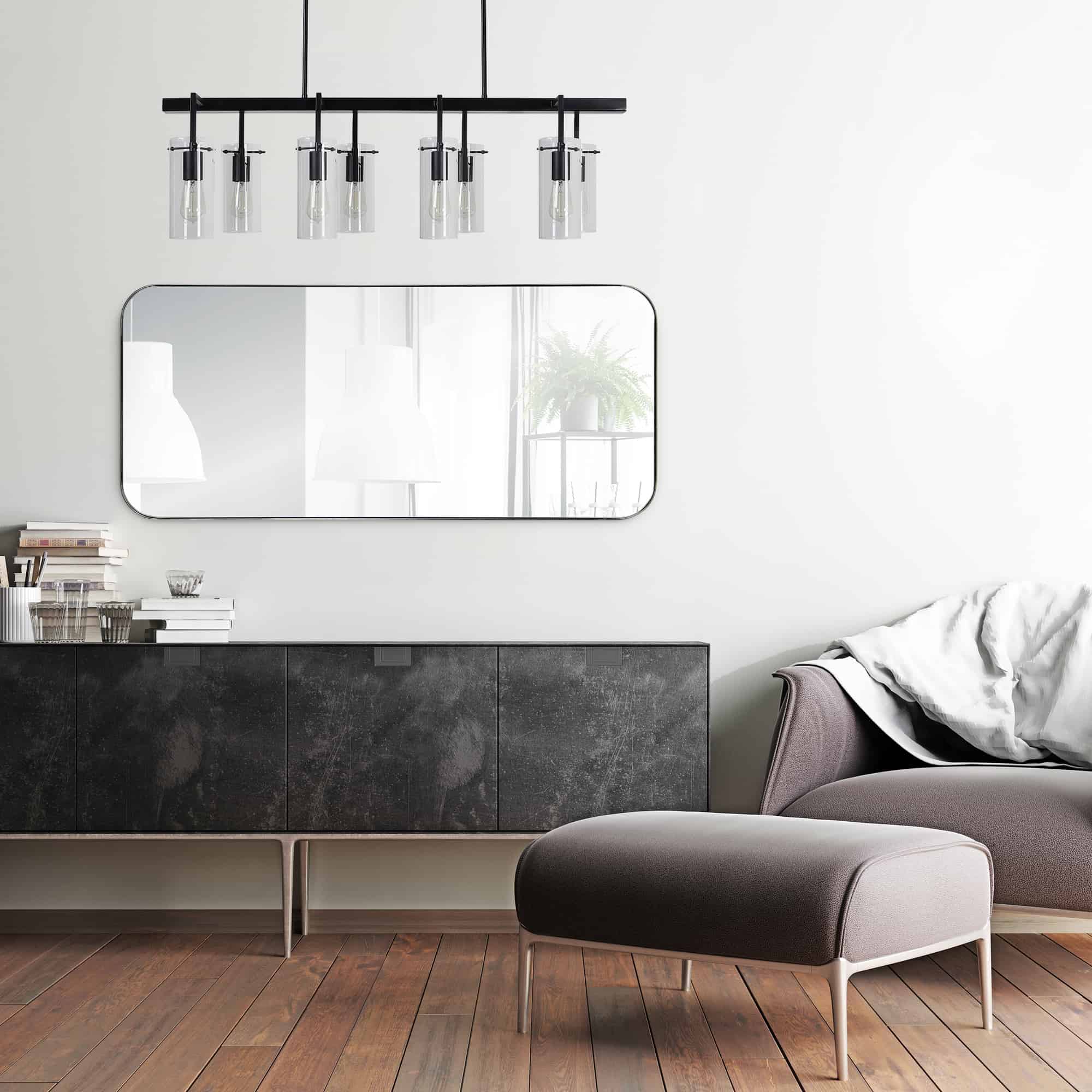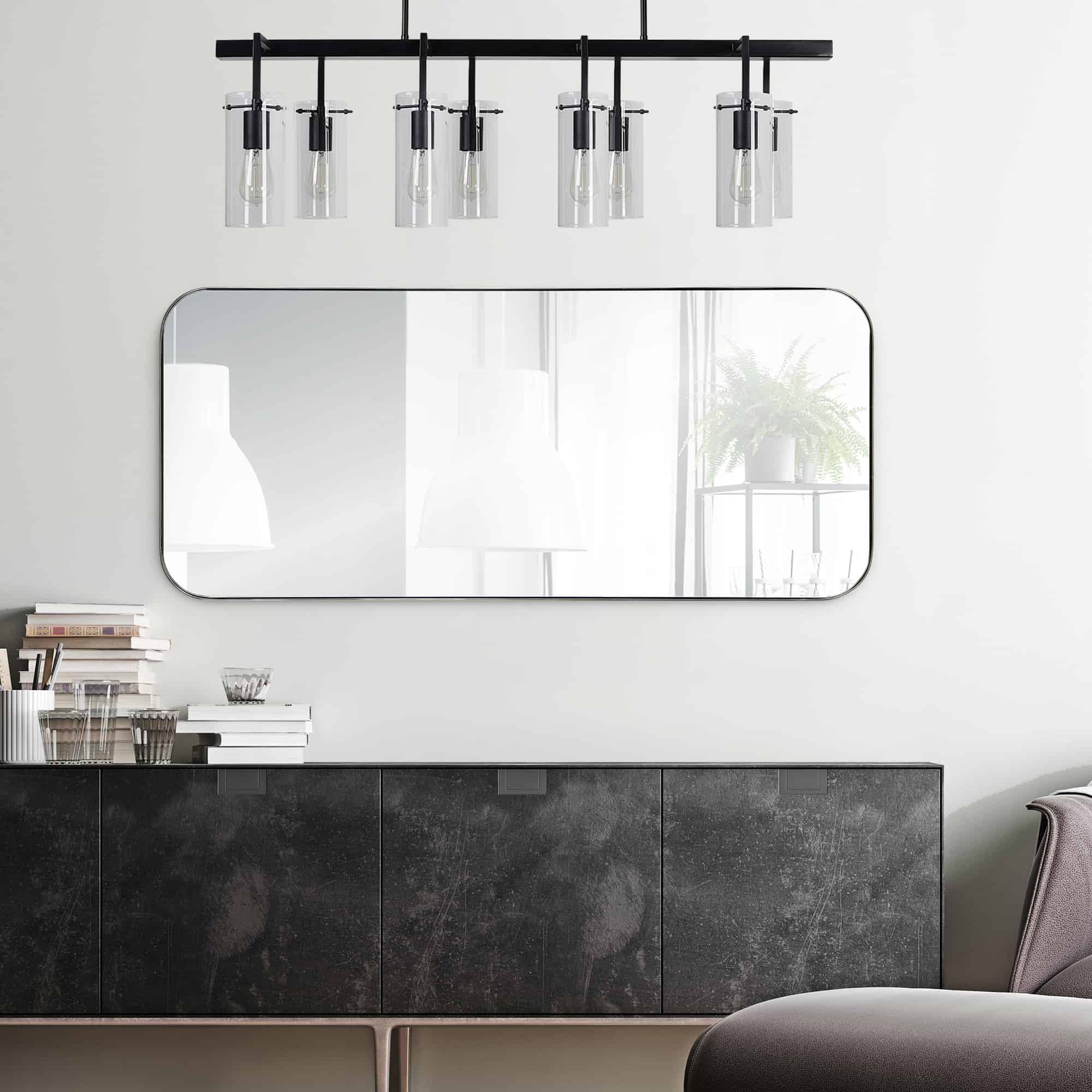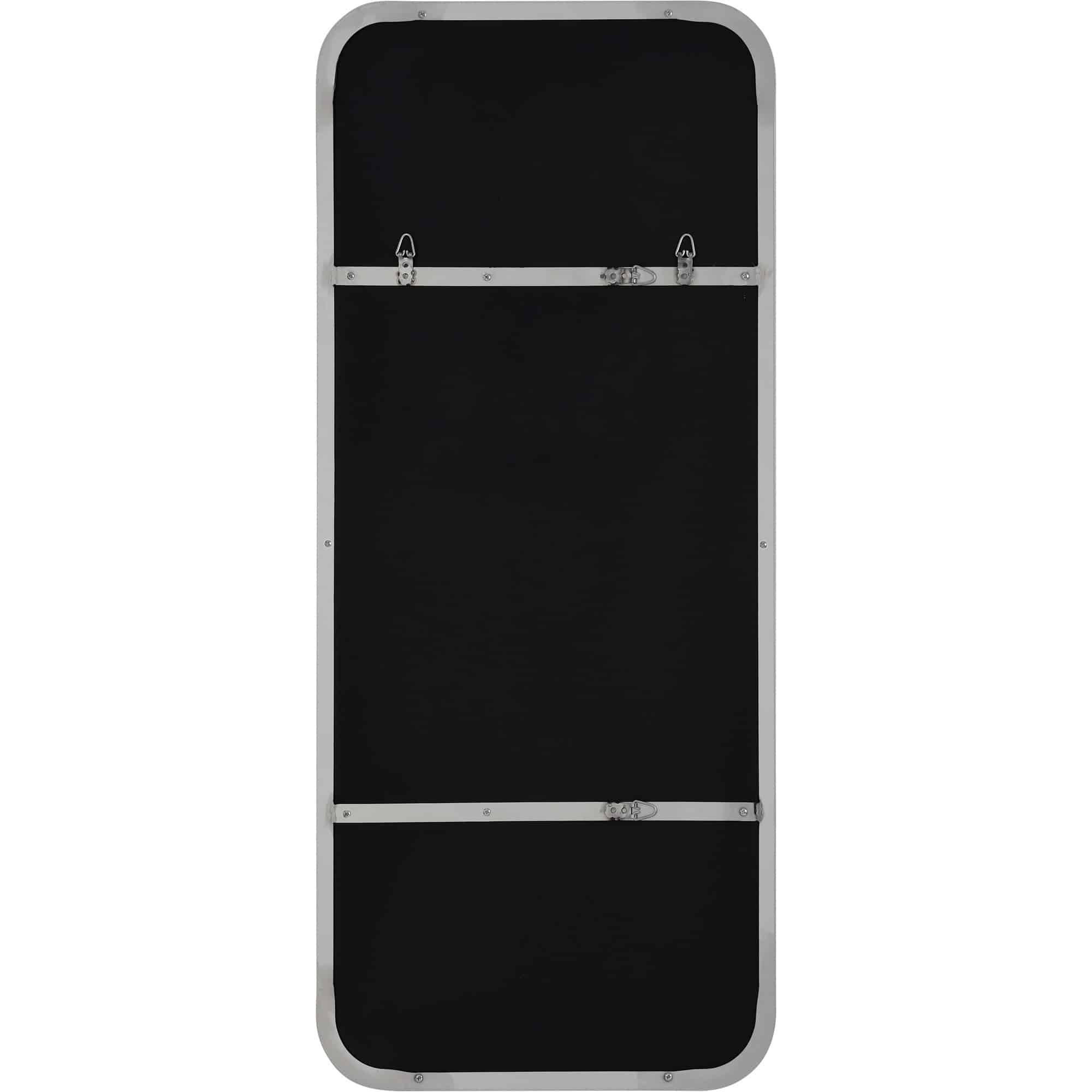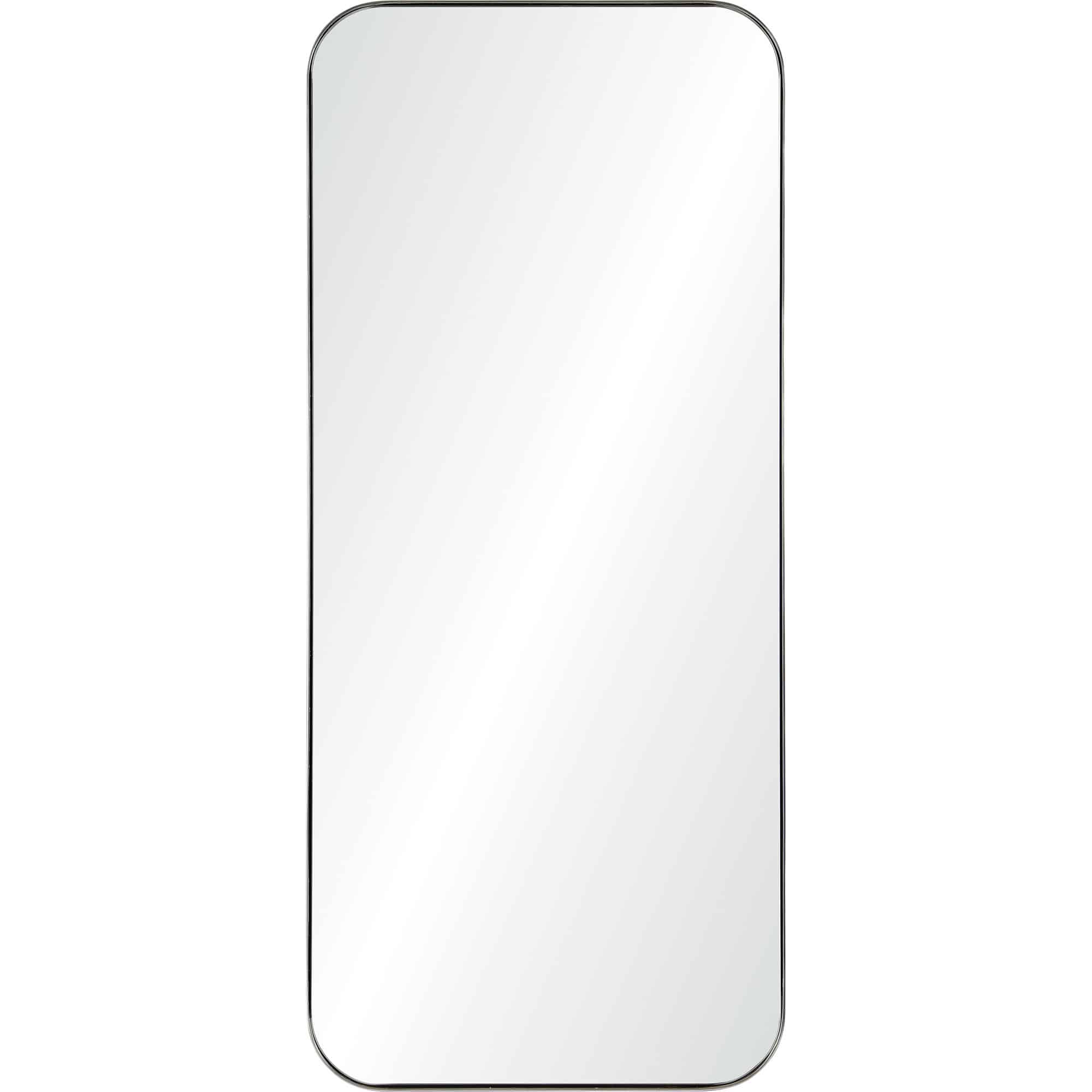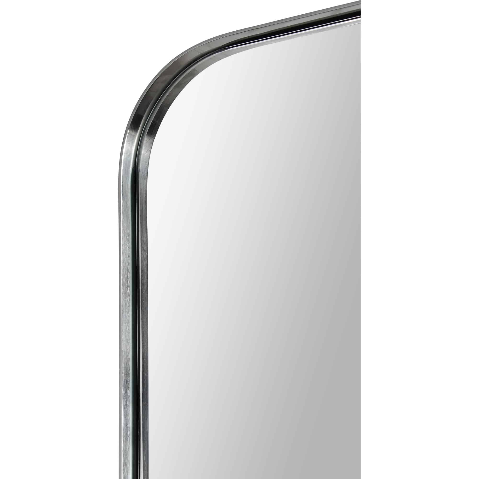 A fresh take on a sleekly styled mirror. The stainless-steel frame in a satin nickel finish adds a modern look to your powder room. The rounded edges of the rectangular design give it a unique appeal.