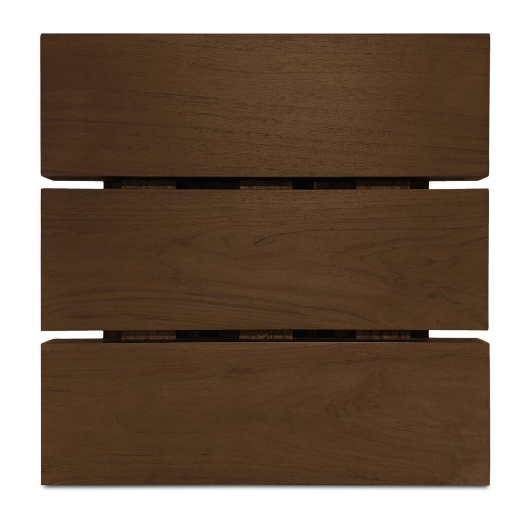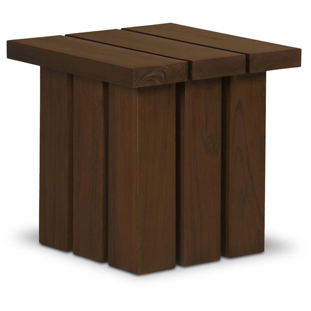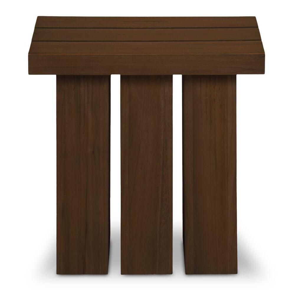 Lightweight look, laid-back feel. Denby keeps things lifted with an open frame and laid-back feel. A slatted teak top lets light and air move through, while square post legs ground the silhouette. Finished in a warm, toasted tone, it adds natural texture to any setup. Simple, solid, and built to live easy—indoors or out.