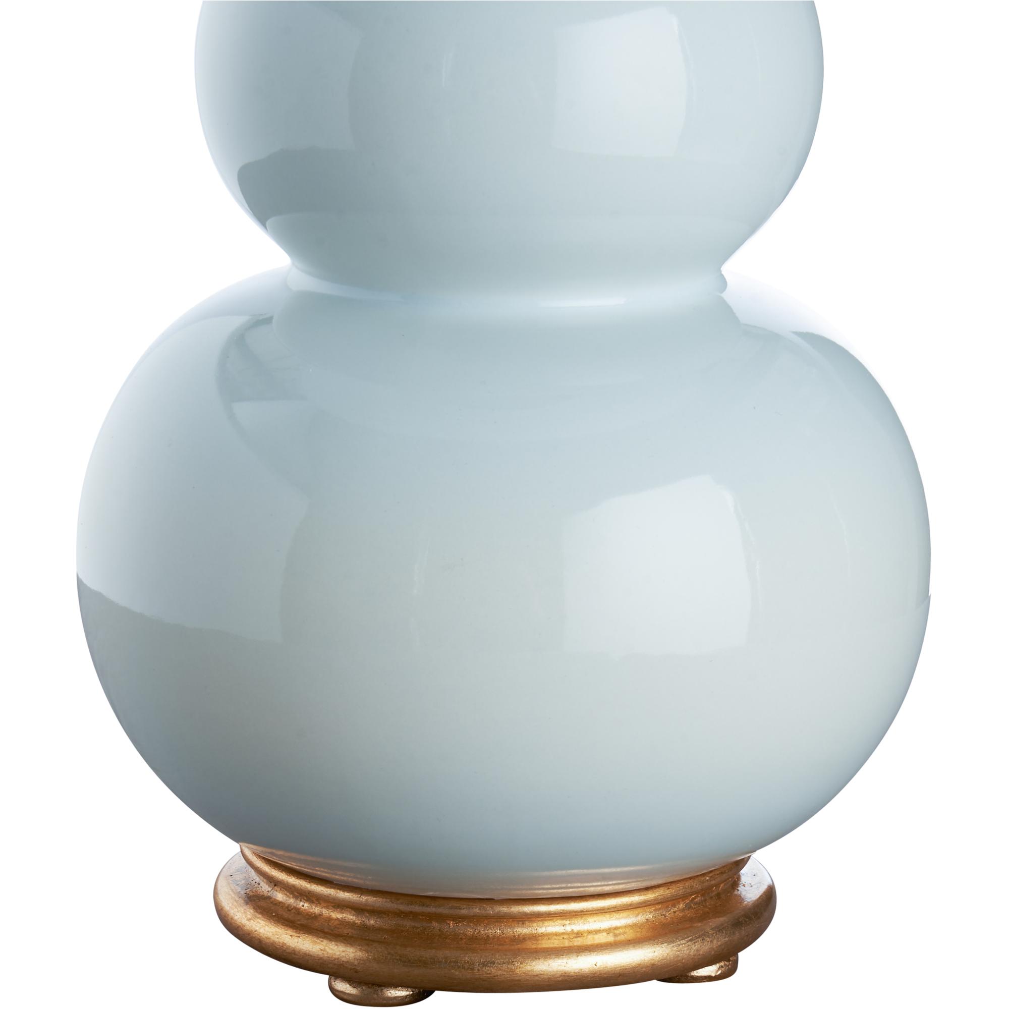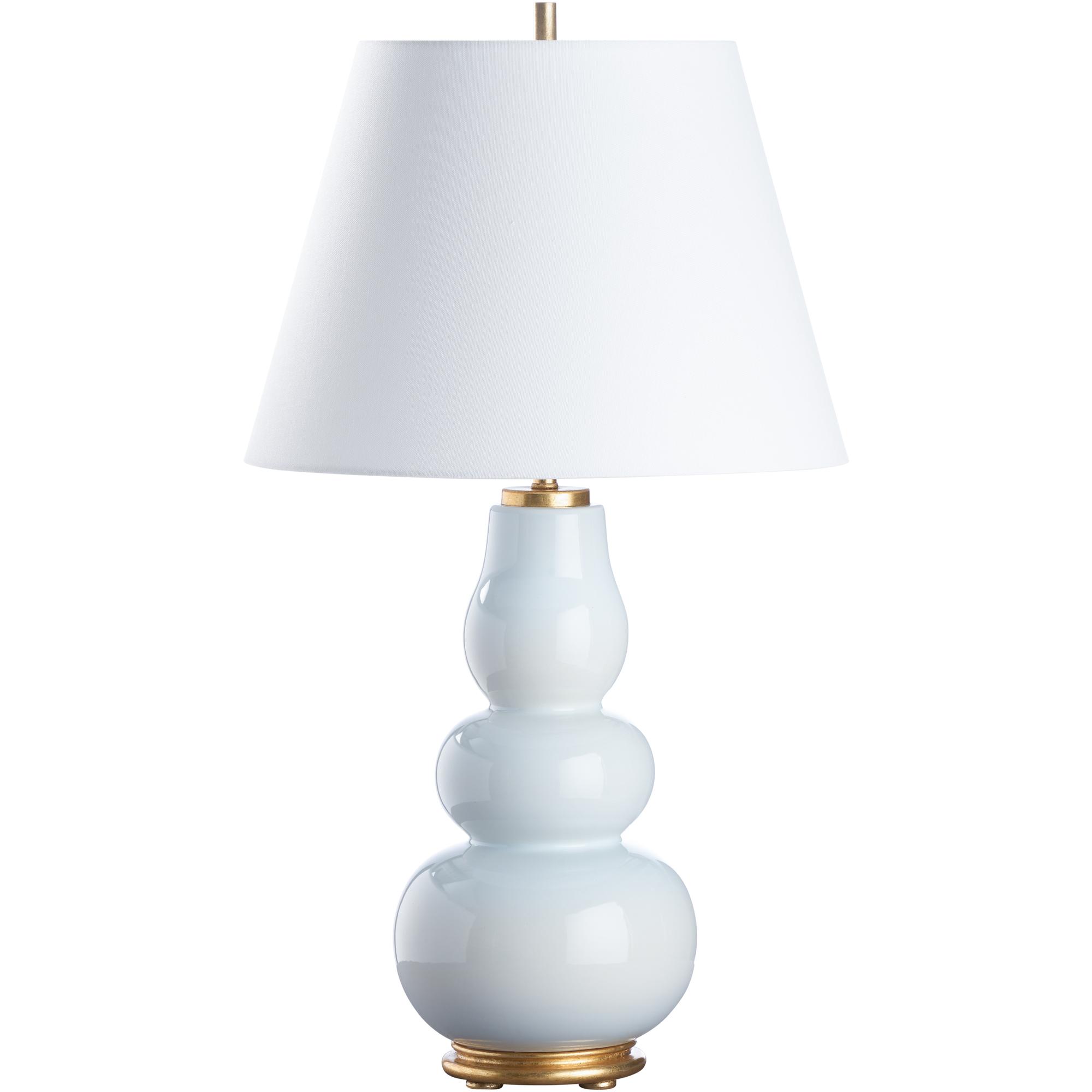 This elegant ceramic lamp features soft, flowing curves in a soft white color, creating a calming and sophisticated aesthetic. Its gold base adds a touch of luxury, making it a striking addition to any space. Designed by Jamie Merida.