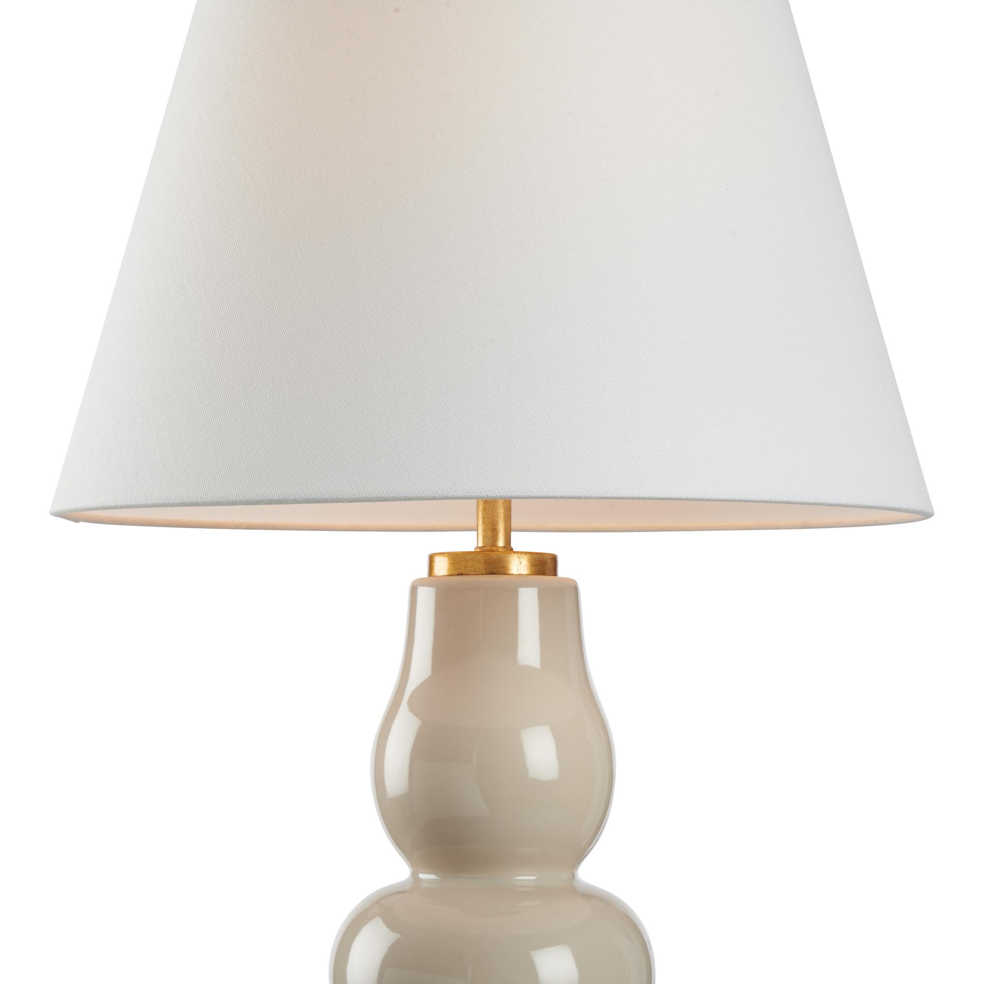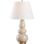 This elegant ceramic lamp features soft, flowing curves in a warm sand color, creating a calming and sophisticated aesthetic. Its gold base adds a touch of luxury, making it a striking addition to any space. Designed by Jamie Merida.